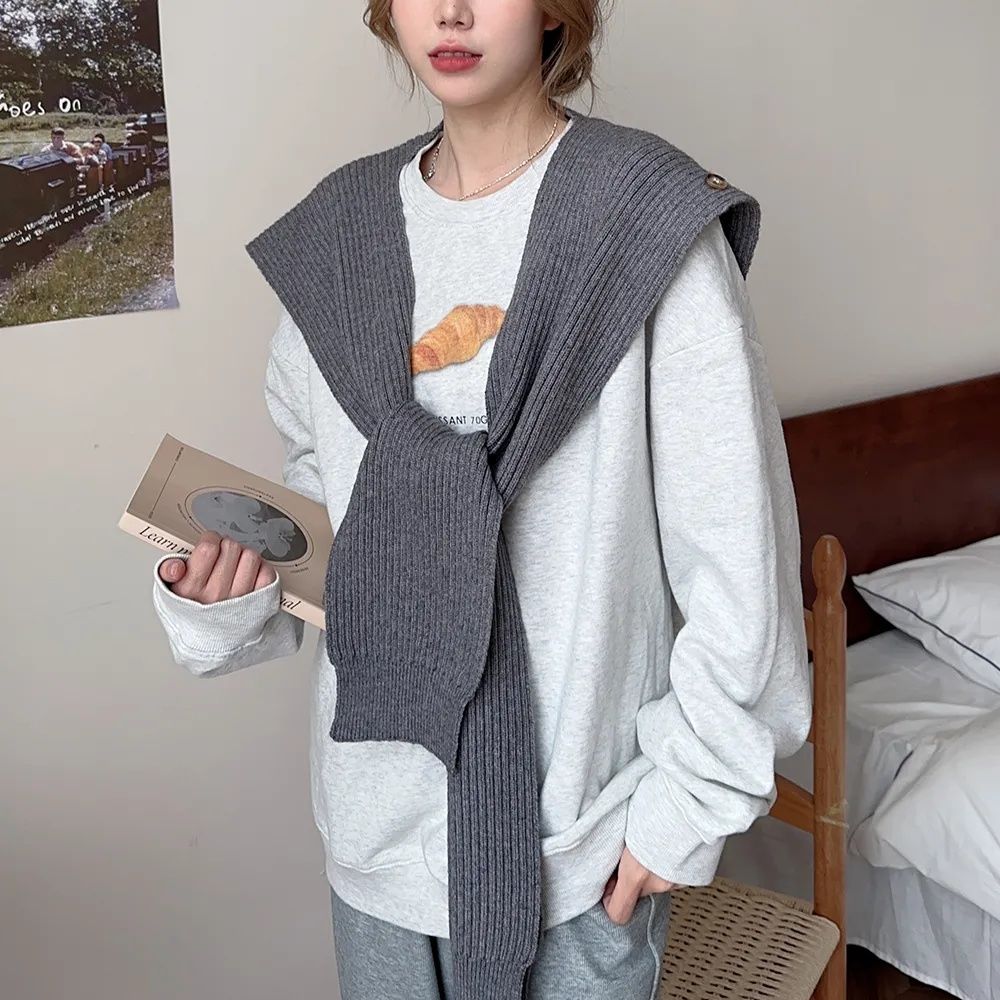 不只是圍巾 多用途針織掛脖披肩 條紋針織掛脖圍巾
