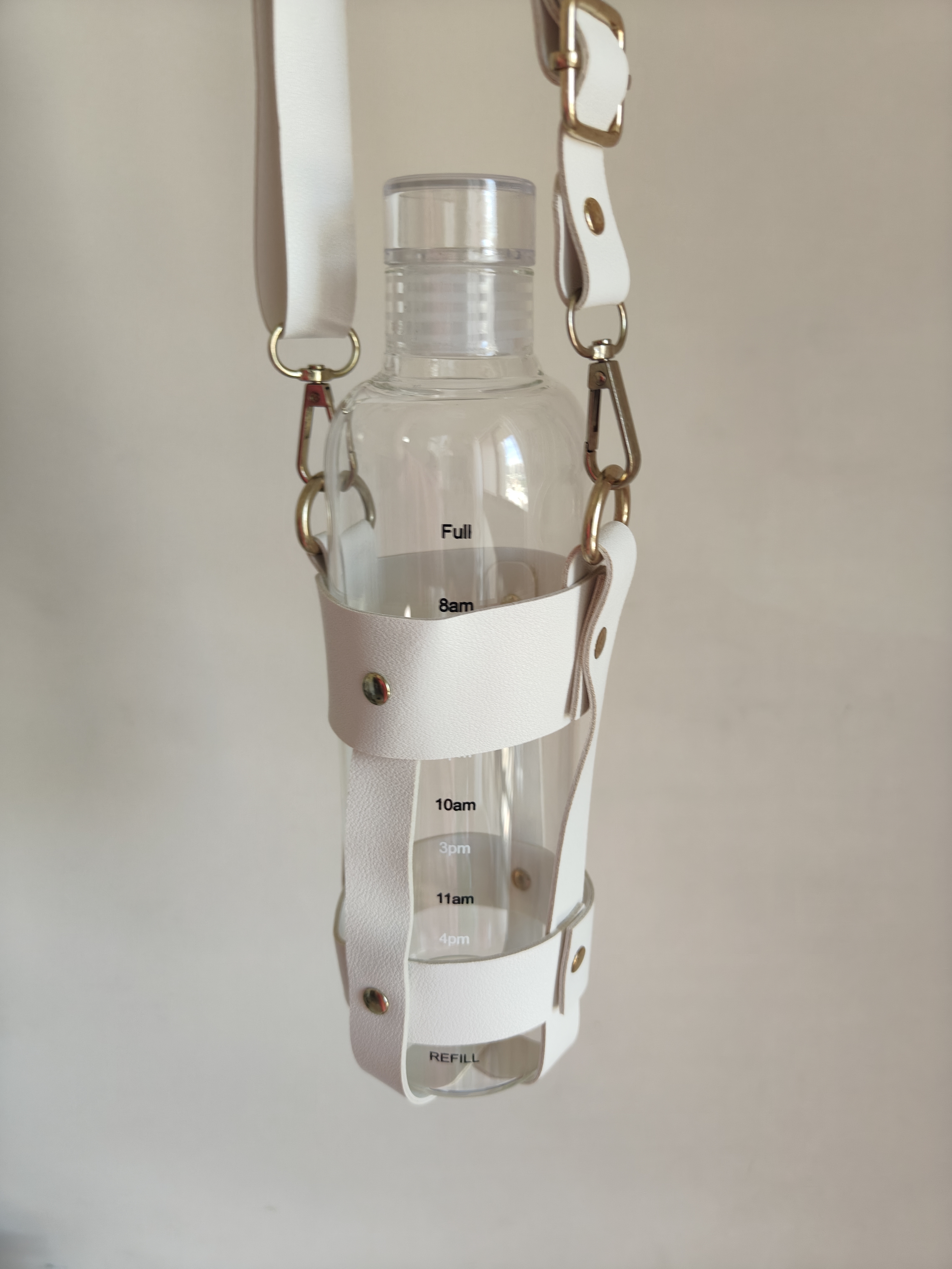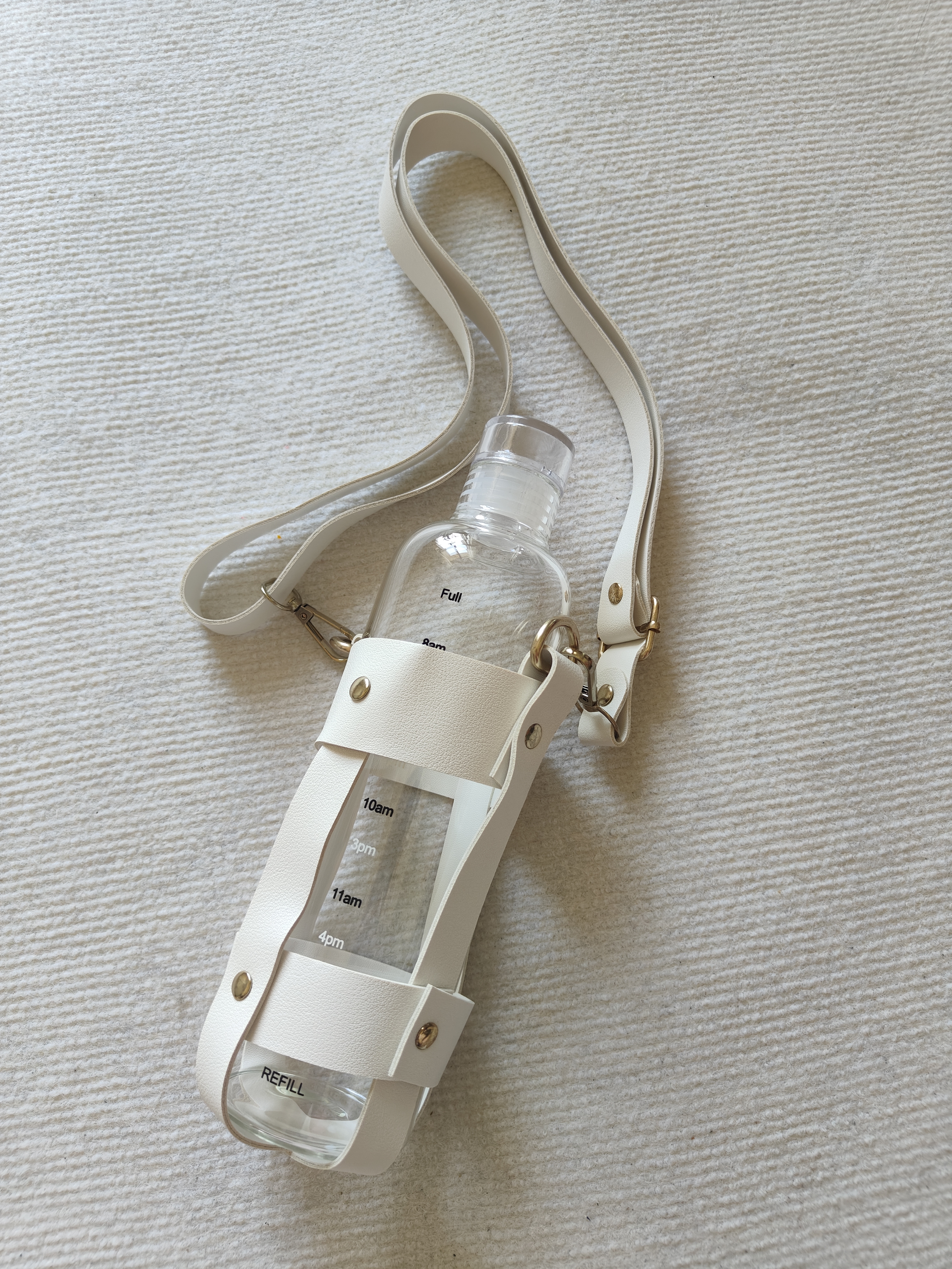 今日喝水打卡神器 時尚皮革背帶玻璃瓶 免運商品