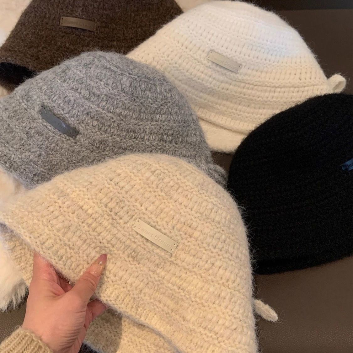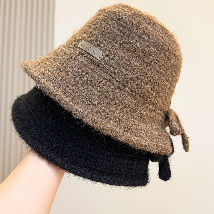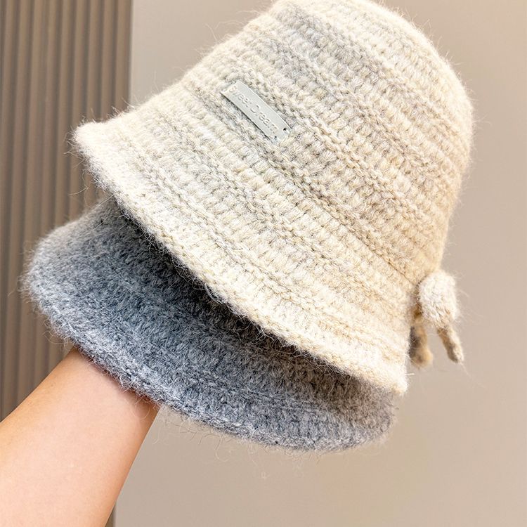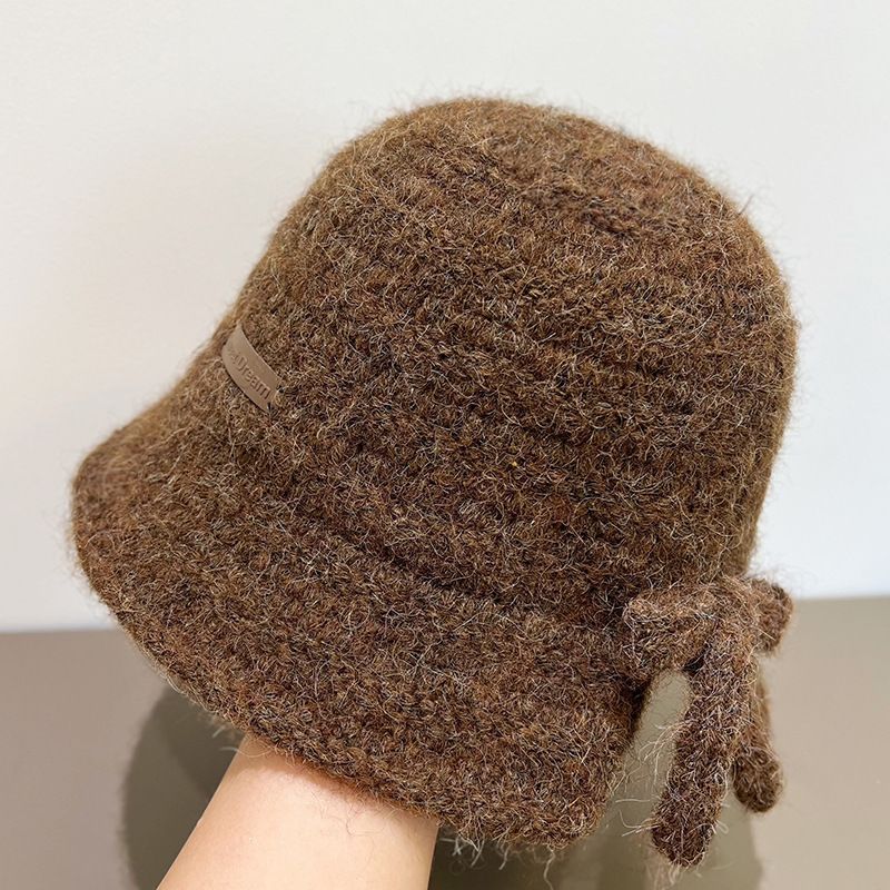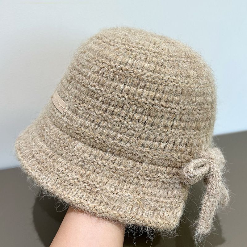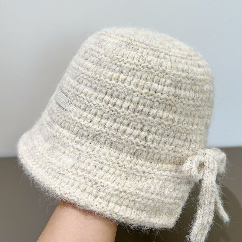 冬日質感系 日系蝴蝶結毛線水桶帽