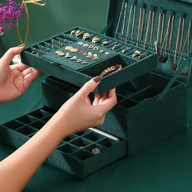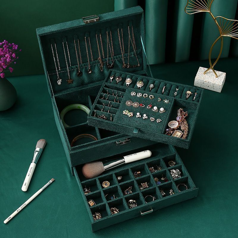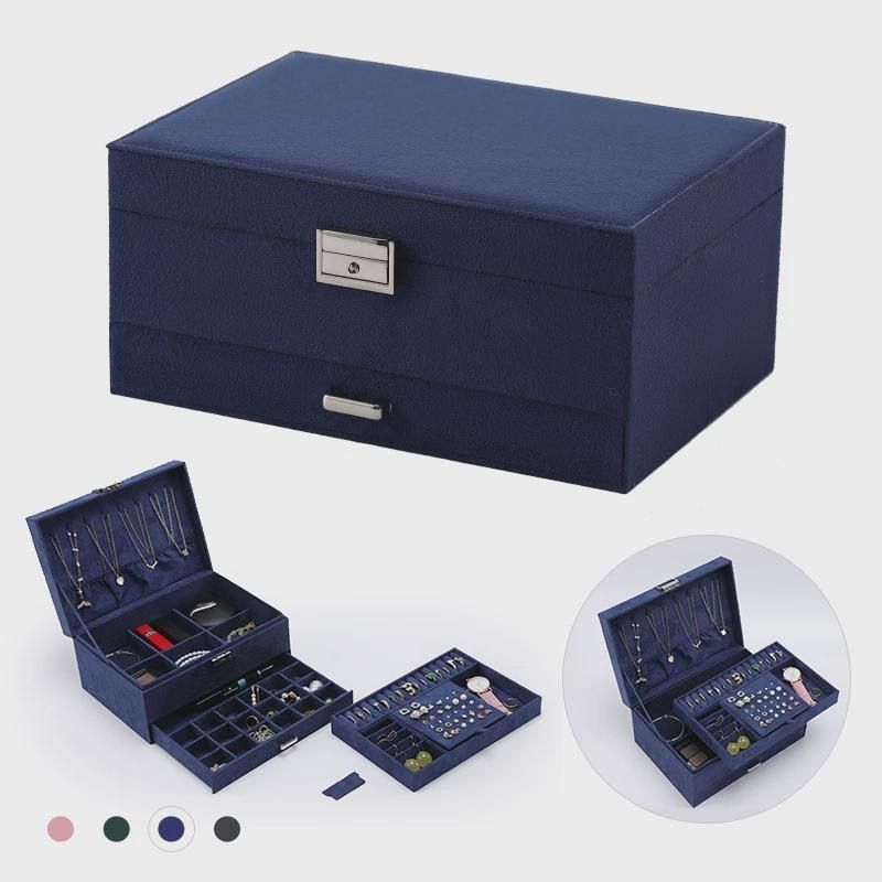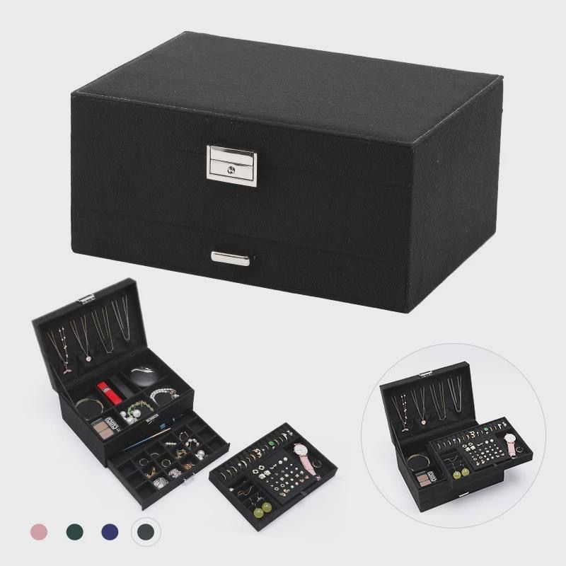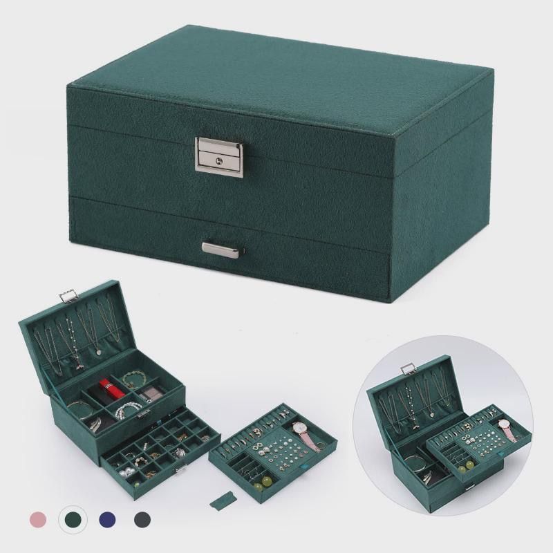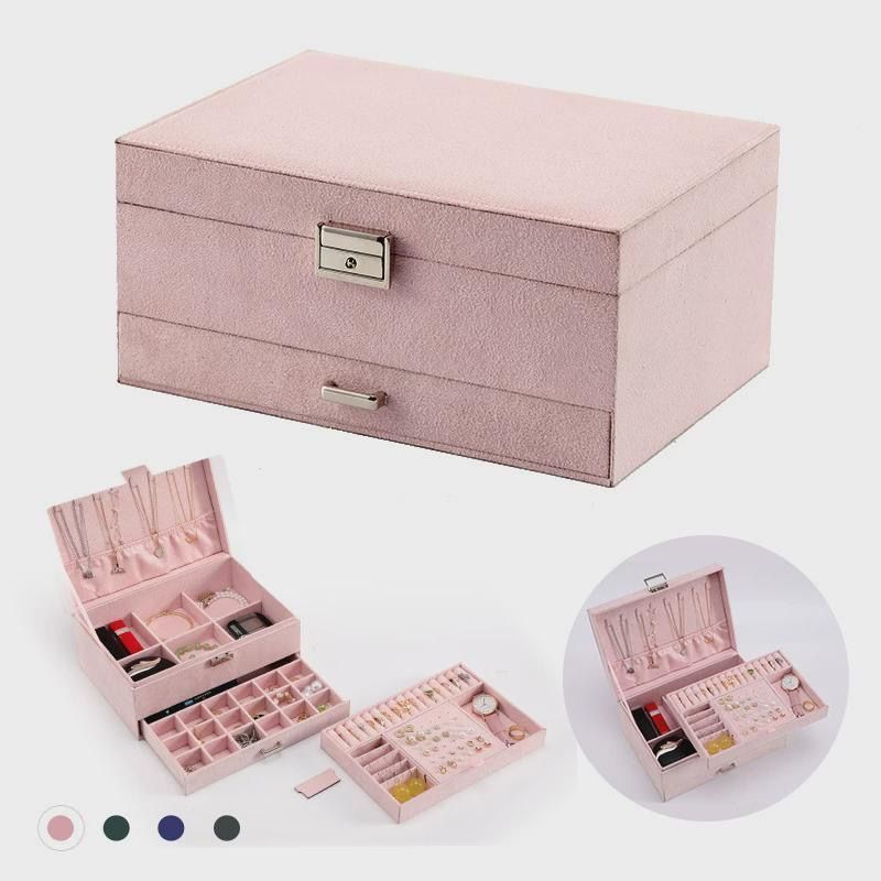 升級三層麂皮絨帶鎖精緻首飾珠寶盒