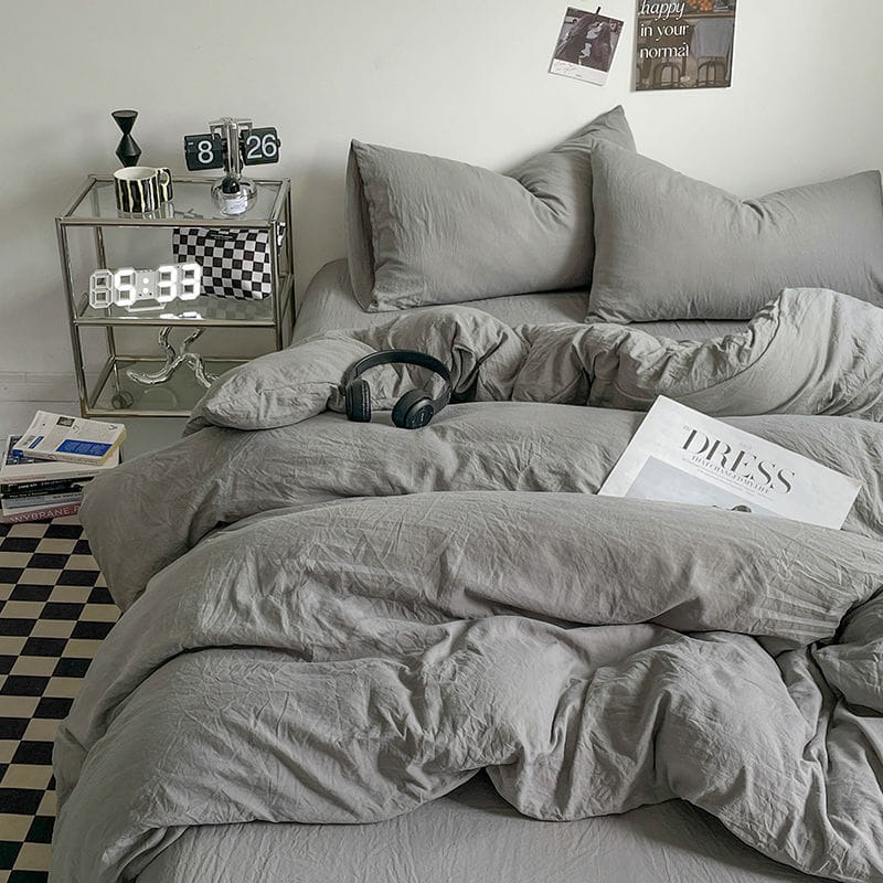 新色系水洗棉四件床包組 流光灰純色有單人款
