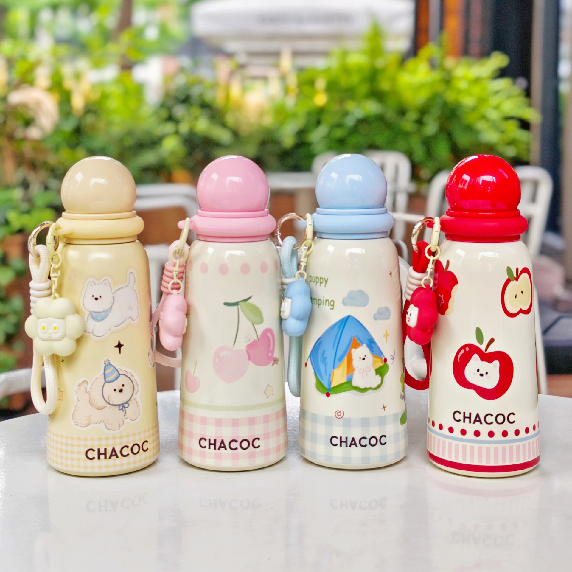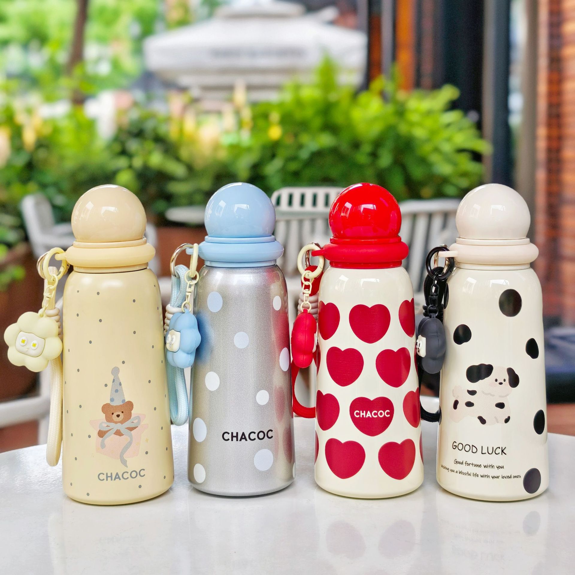 圓球球萌系保溫杯 400ml可愛色系不鏽鋼保溫杯 附掛件便攜水杯