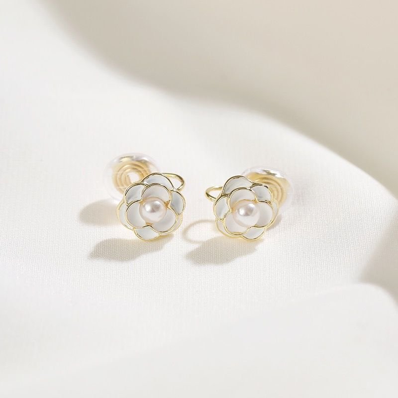 耳環:經典黑白色調,珍珠點綴的山茶花設計