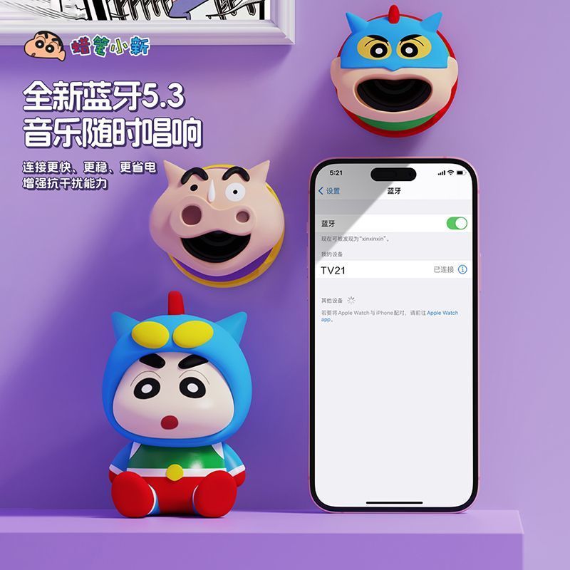 委託代購 正版蠟筆小新磁吸藍牙音響 可愛造型手機支架三合一