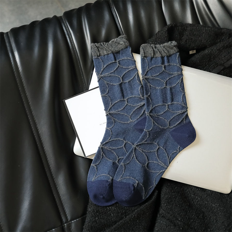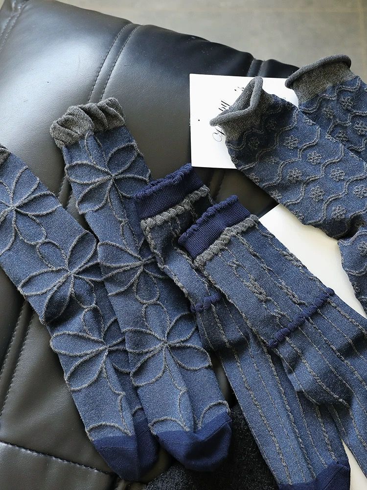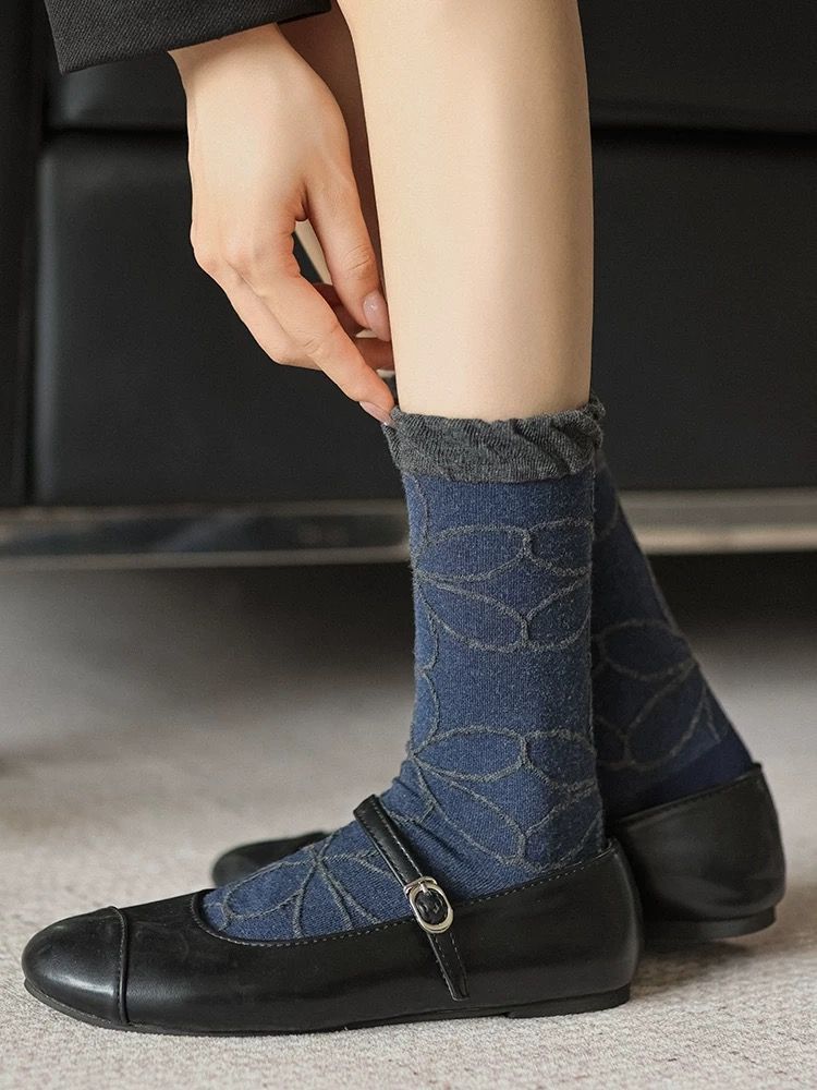 復古牛仔藍 × 暗花織紋,低調中帶著優雅,搭配皮鞋、瑪莉珍或樂福鞋都剛剛好