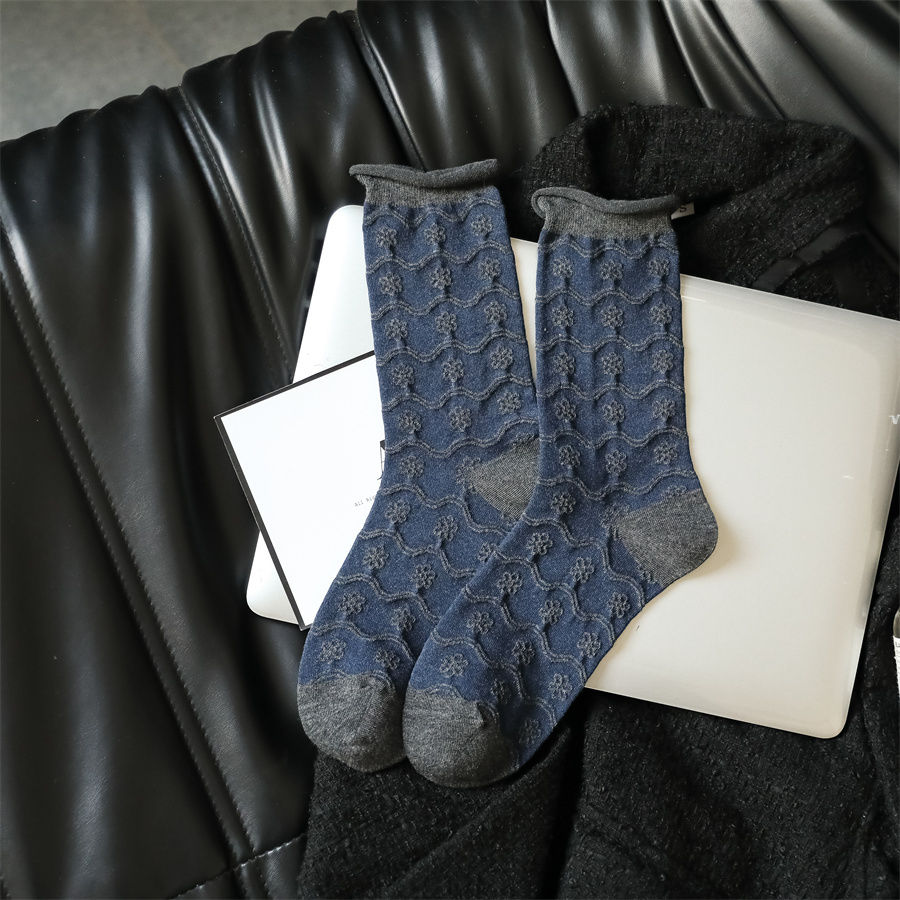 秋冬新款 ins撞色條紋堆堆襪中筒襪5雙組