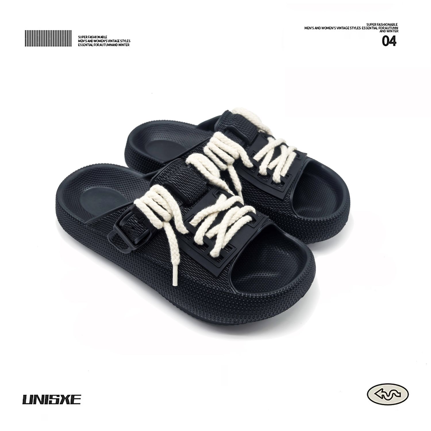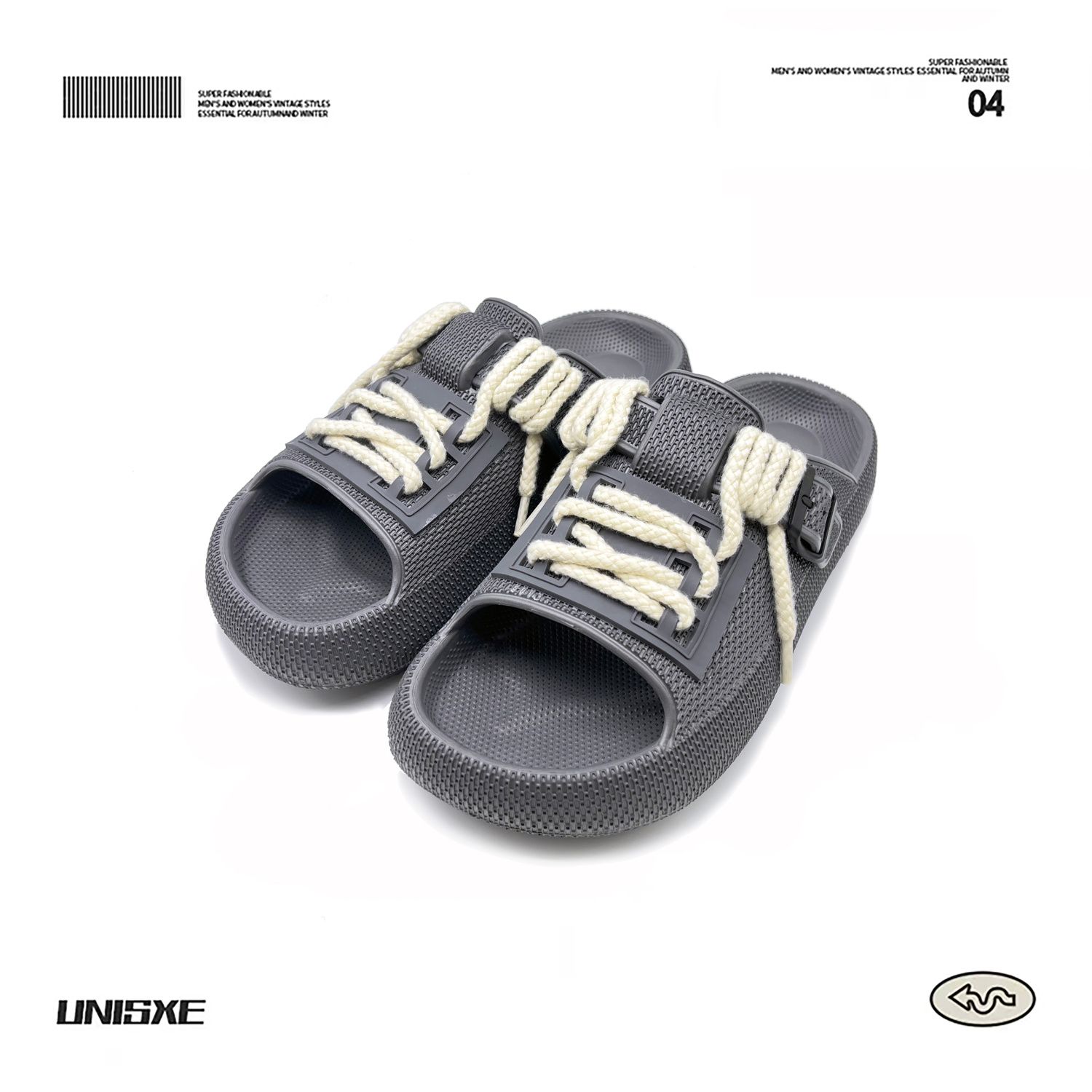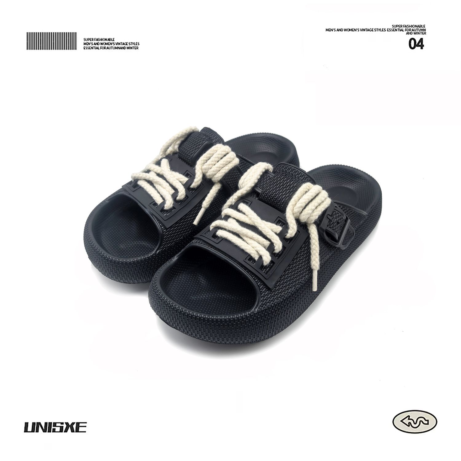 情侶款個性厚底設計感DIY鞋帶拖鞋