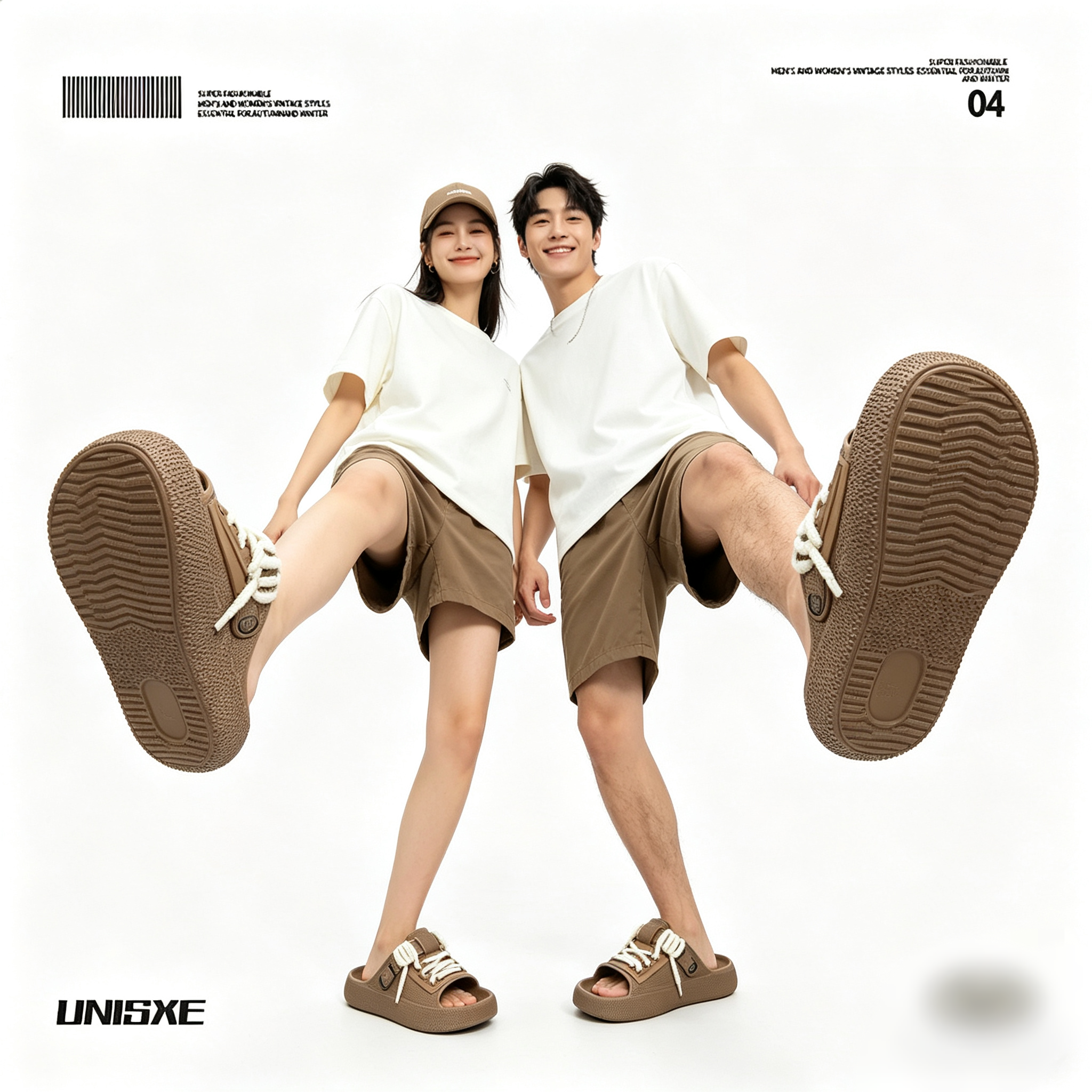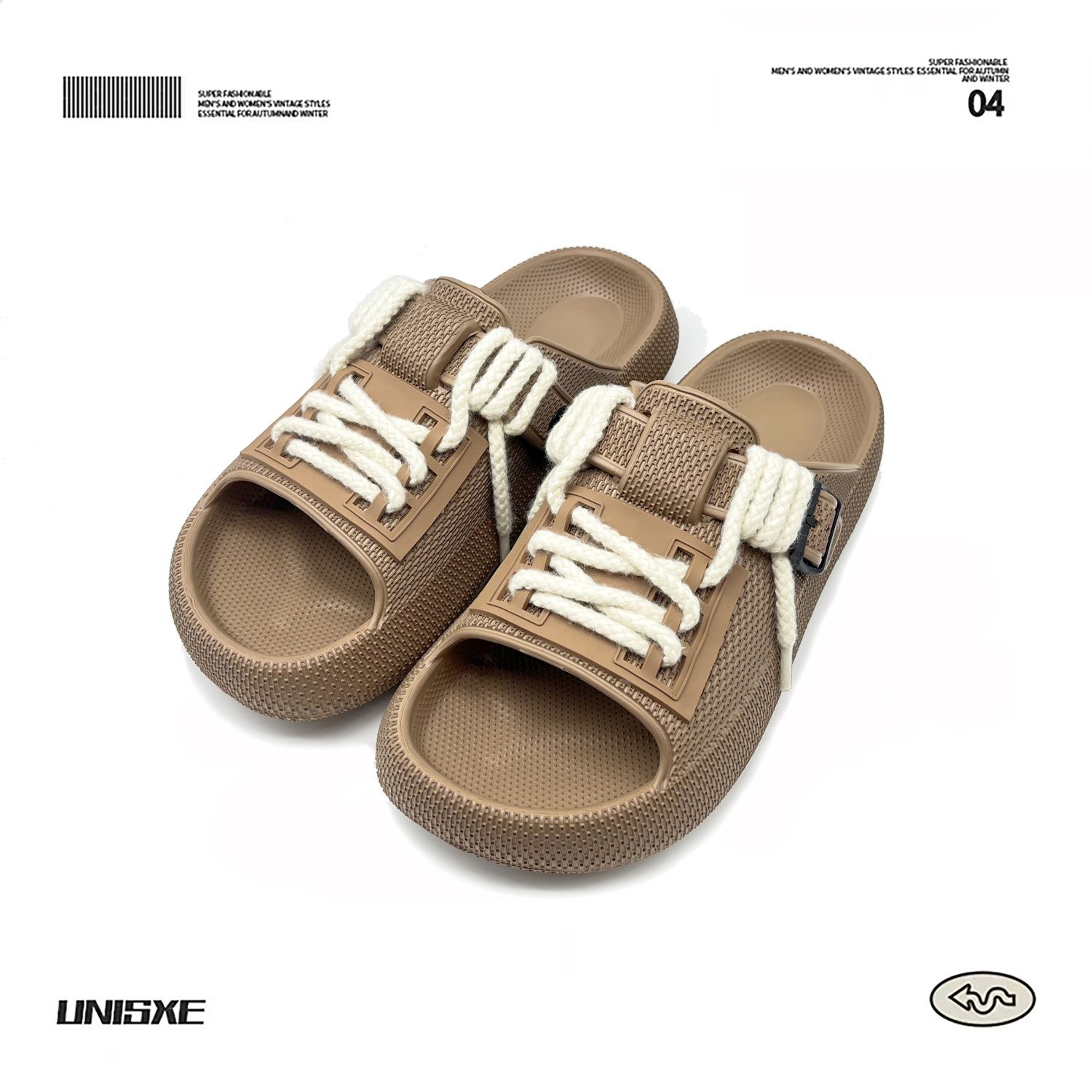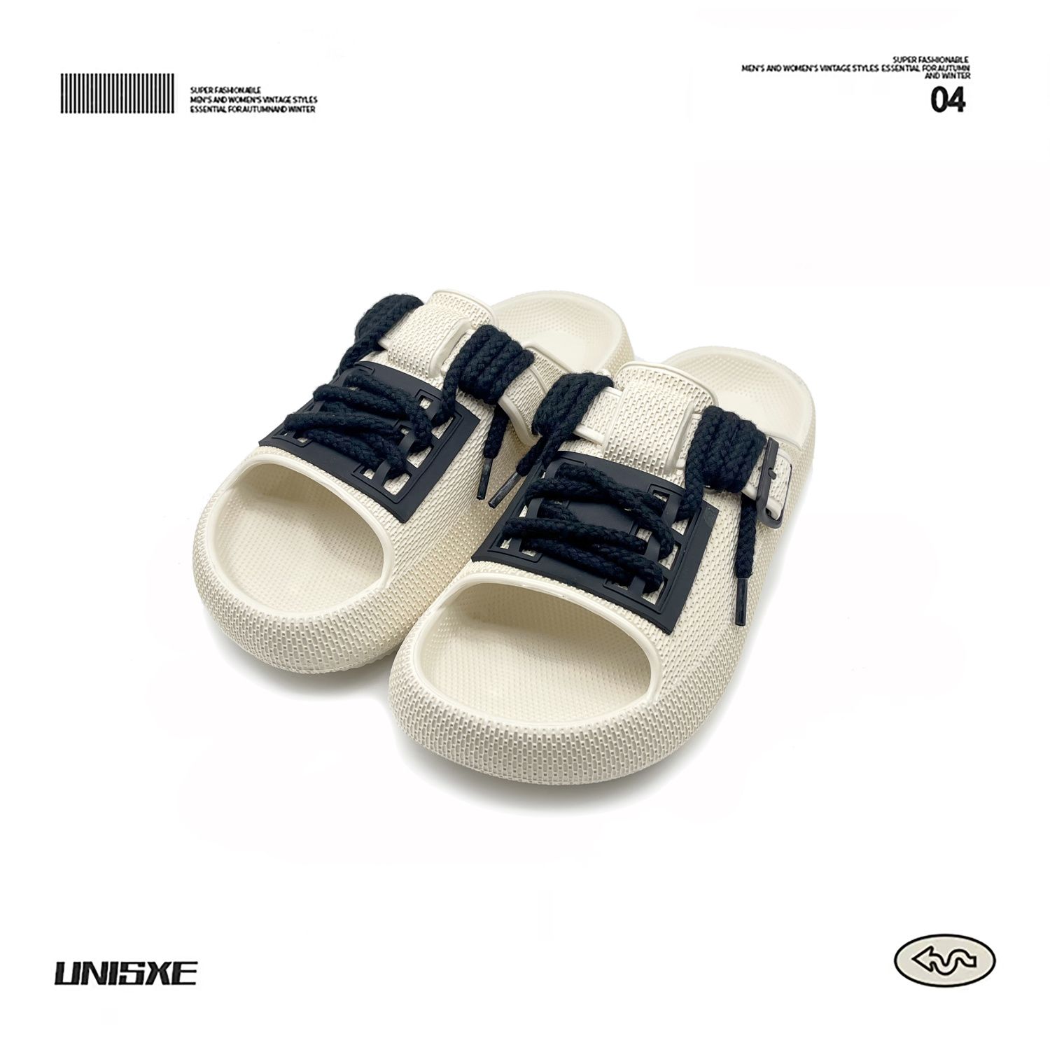 情侶款個性厚底設計感DIY鞋帶拖鞋