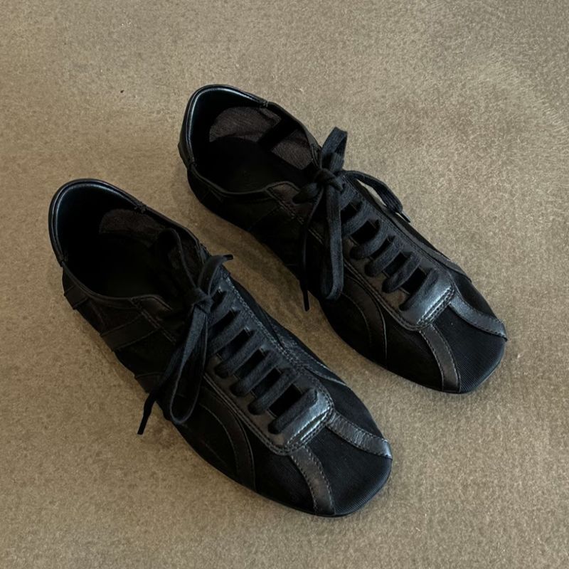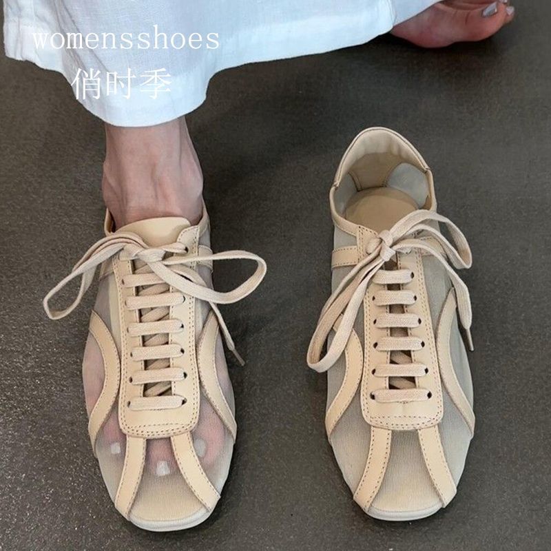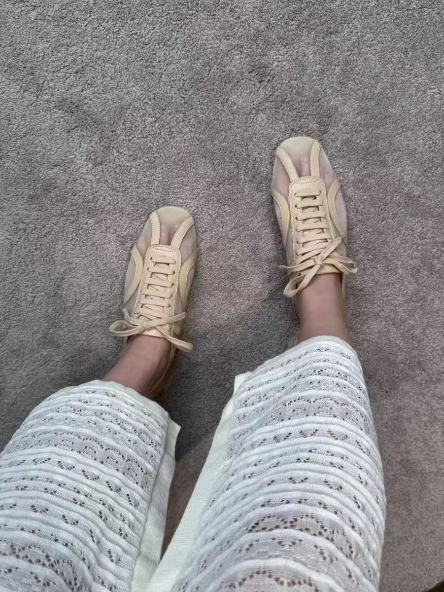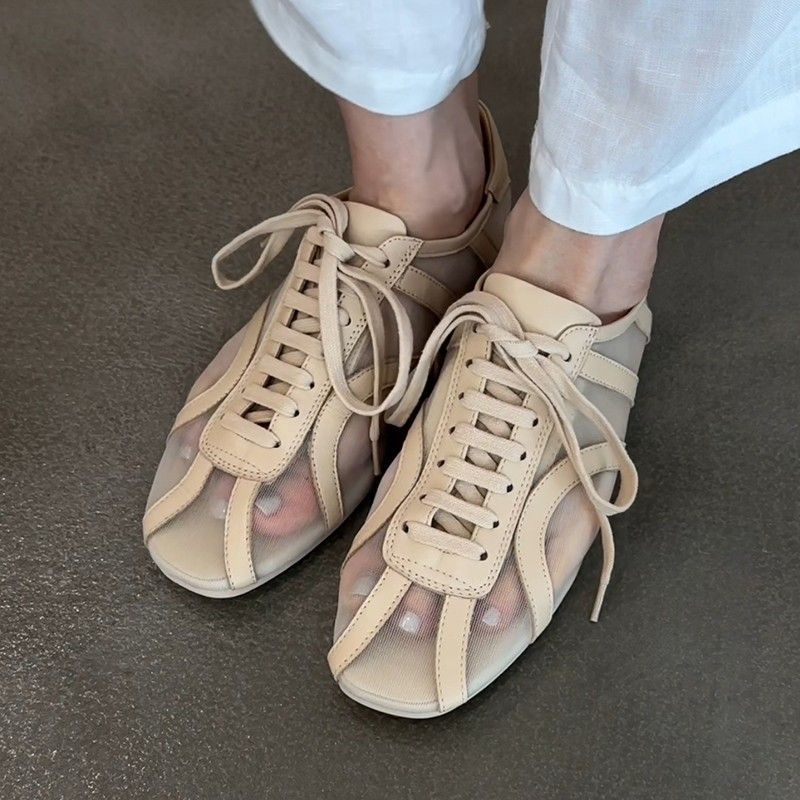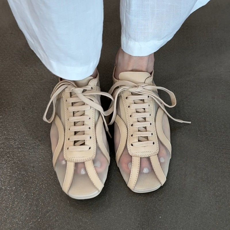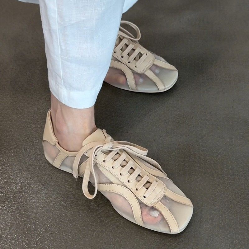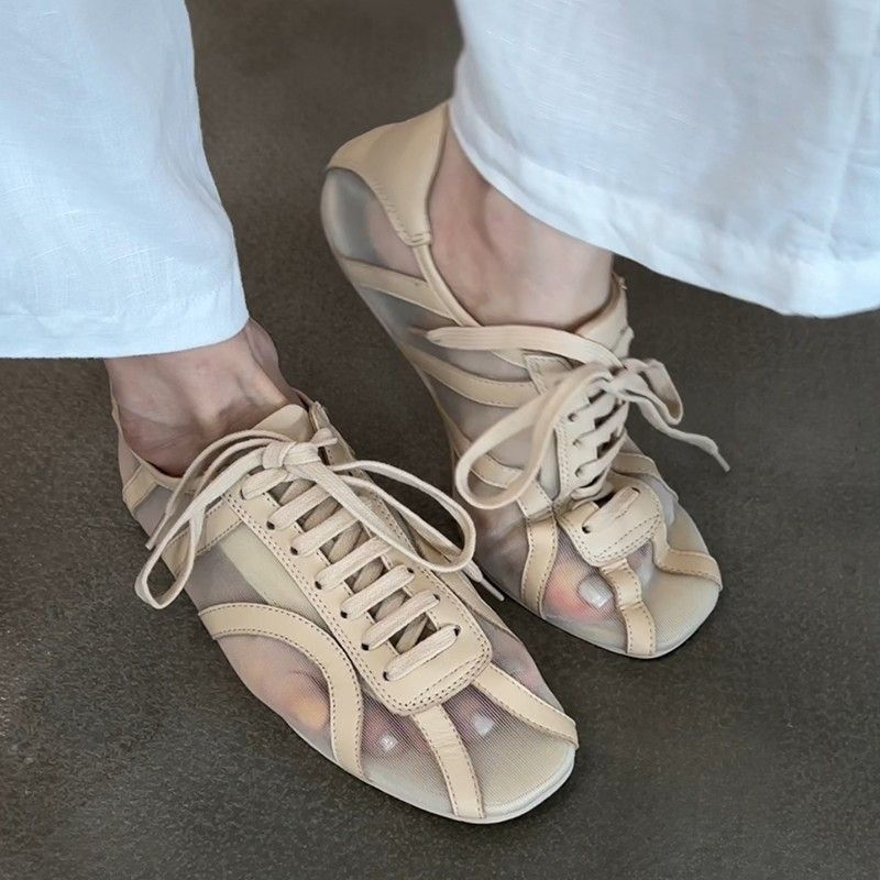 新中式網紗小眾透膚感綁帶平底鞋