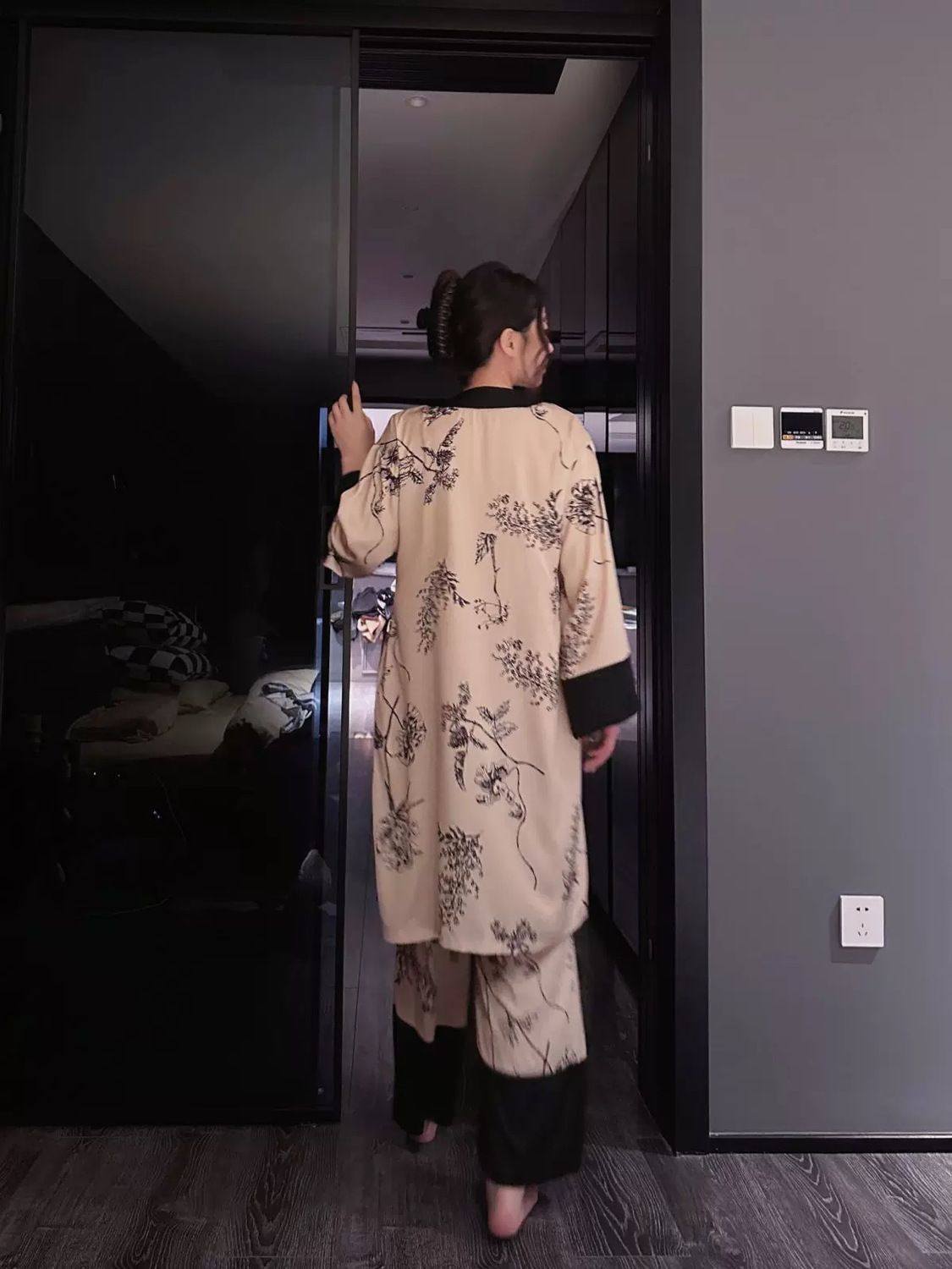 新中式雅緻水墨睡衣 黑邊襯色長袖家居套裝