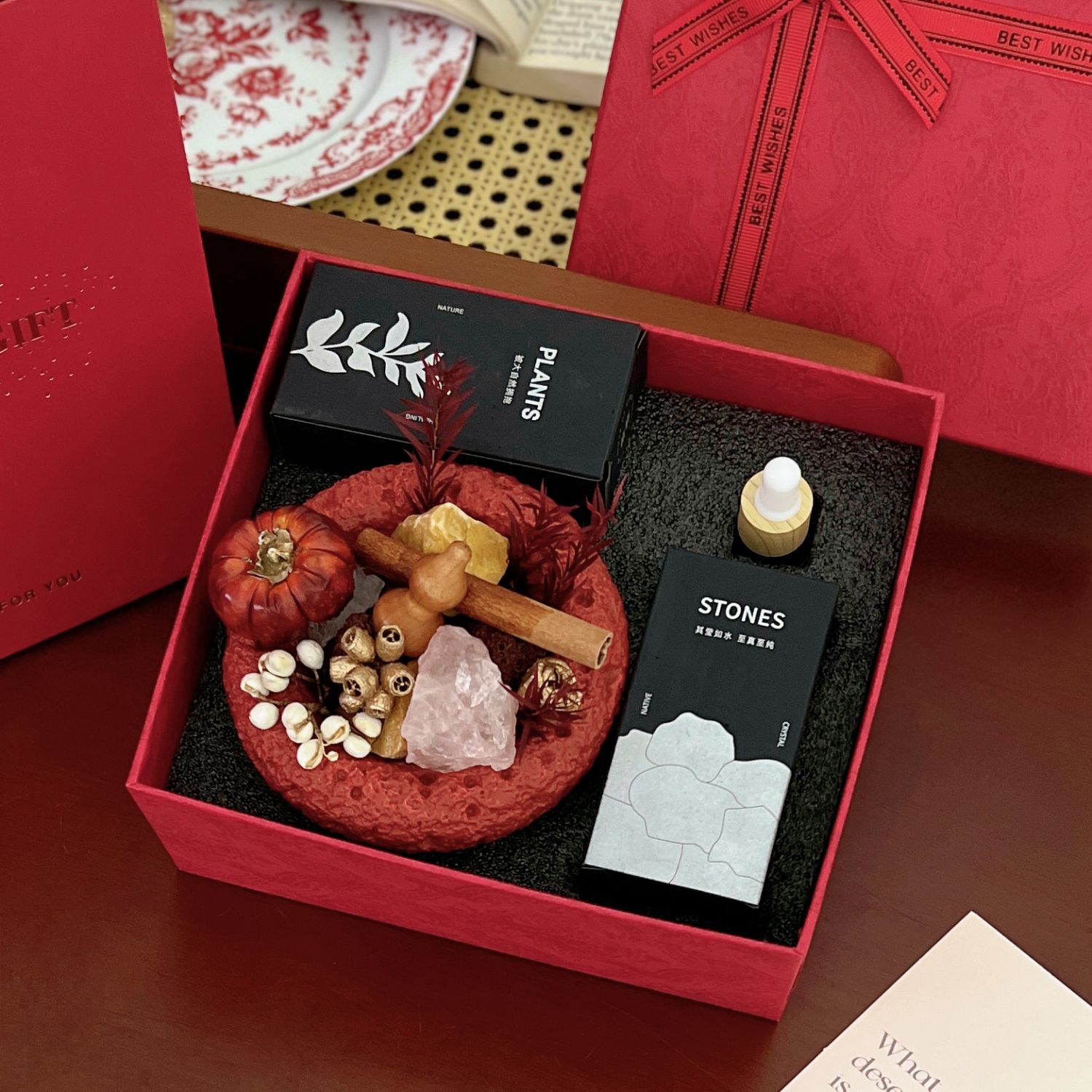 新年快樂 聚寶盆香薰晶石擺件禮盒 招財聚財・居家擴香・生日喬遷送禮