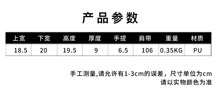 📏 尺寸:方形立體包身・輕巧容量