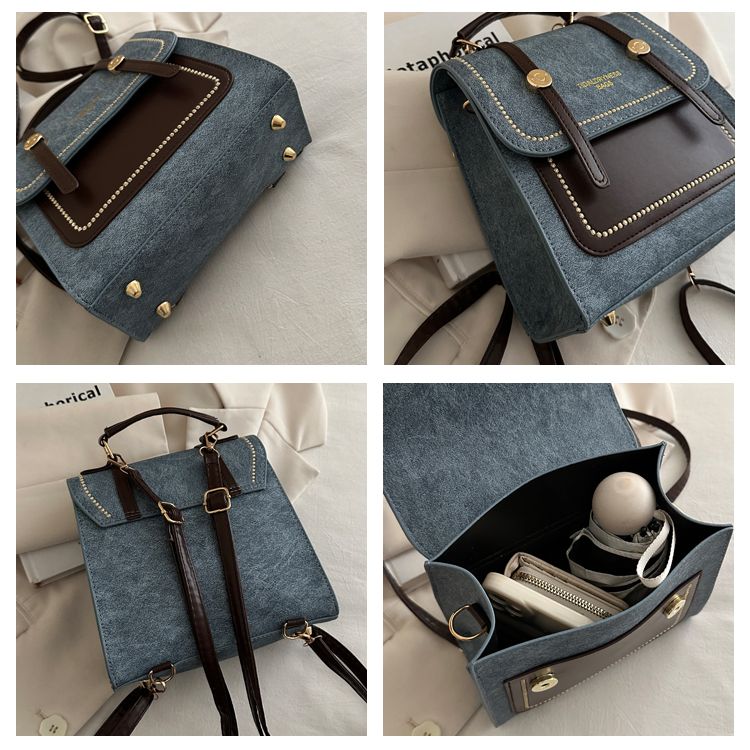 這款【復古方形兩用背包】,以質感帆布結合皮革拼接設計,