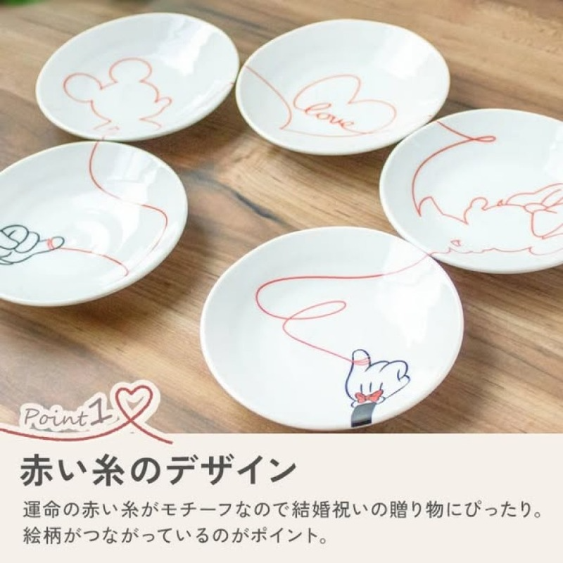 日本製 Disney 迪士尼【紅線之約】情侶造型小碟5件組