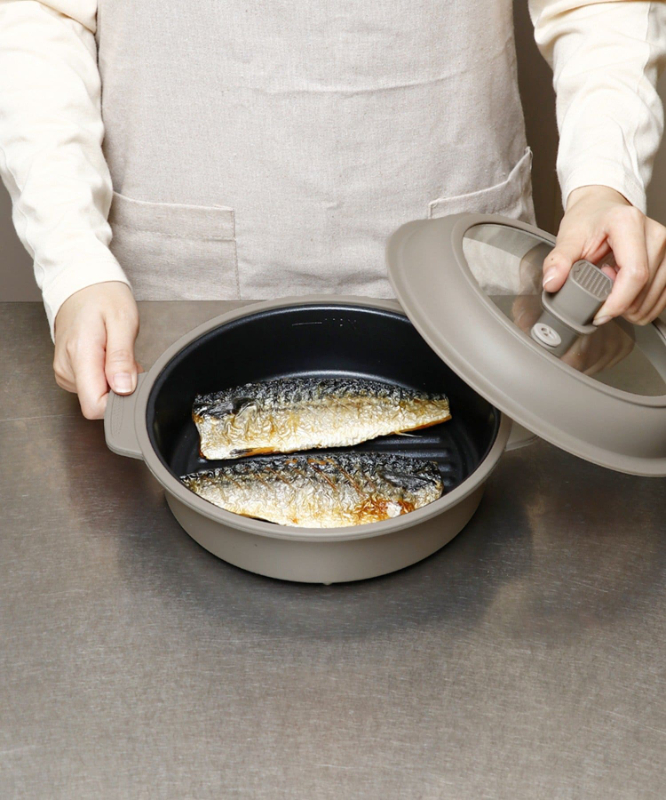 ✦ 導熱均勻 × 微波優化結構:底部採凹槽烤紋設計,連烤魚、鮭魚奶油煎都能美味完成