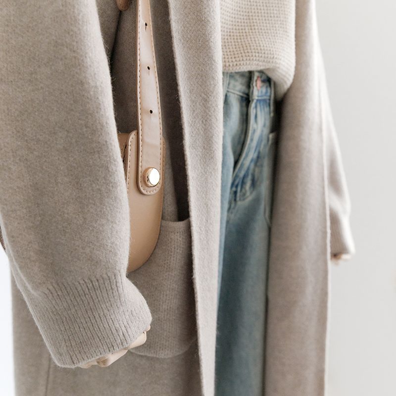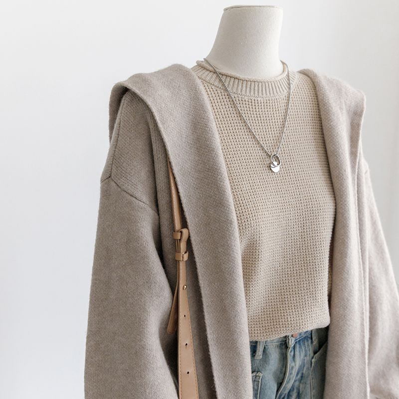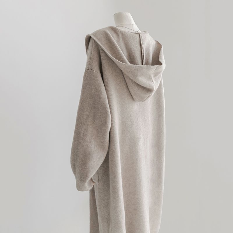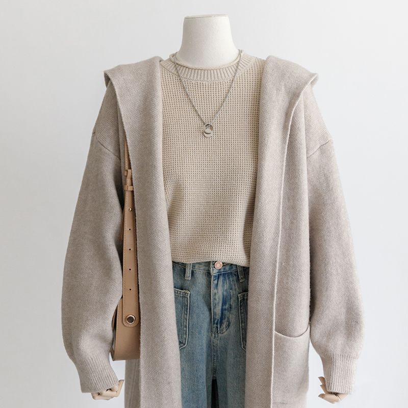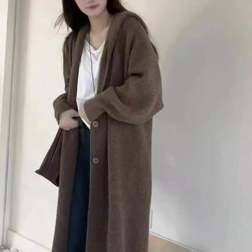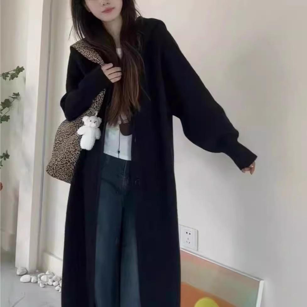 日系高級感連帽長版針織開衫 秋冬慵懶寬鬆顯瘦外套