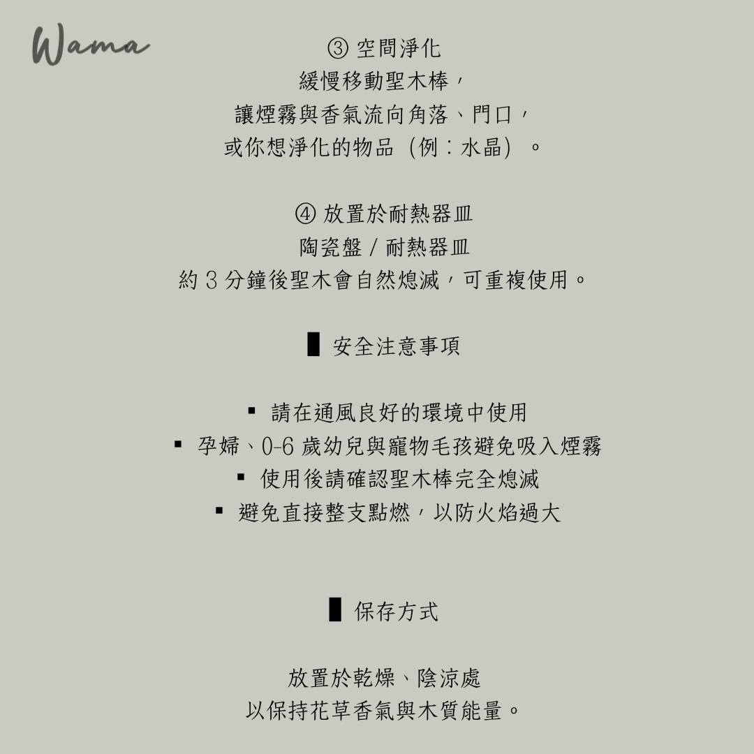 每一支聖木棒,都使用 天然特級 Palo Santo 搭配乾燥花材手工綁製。