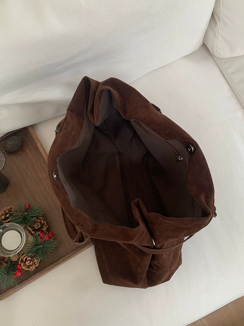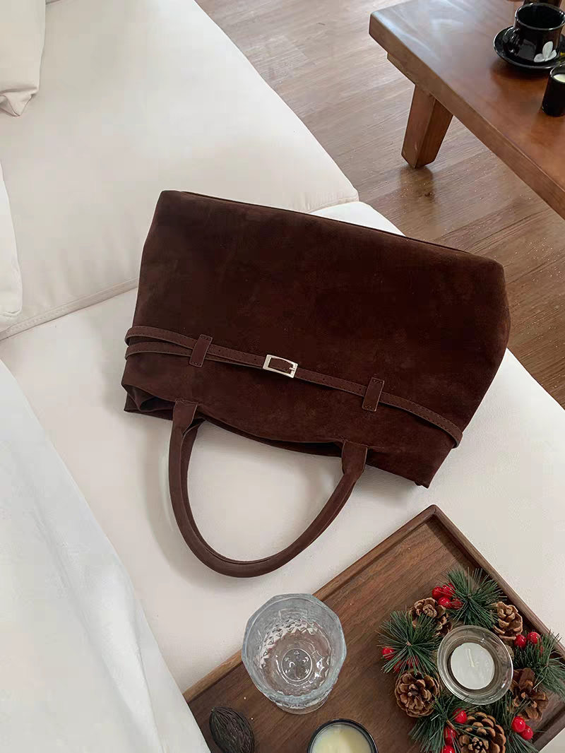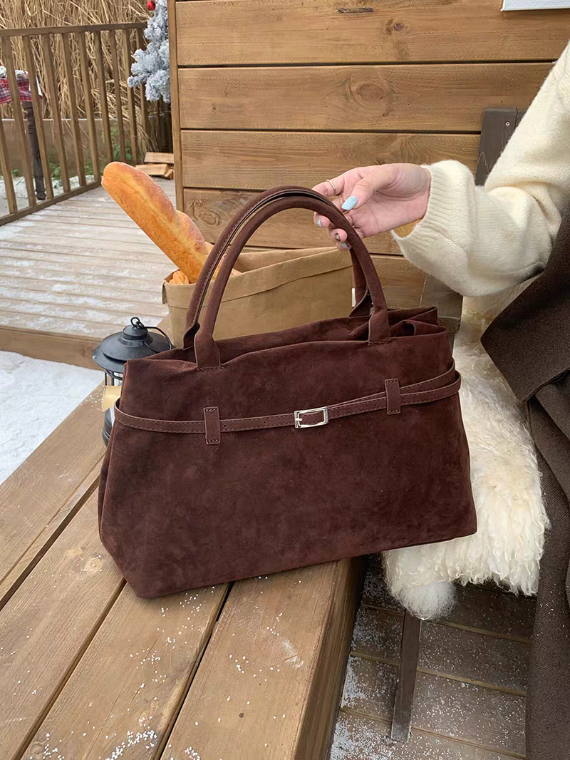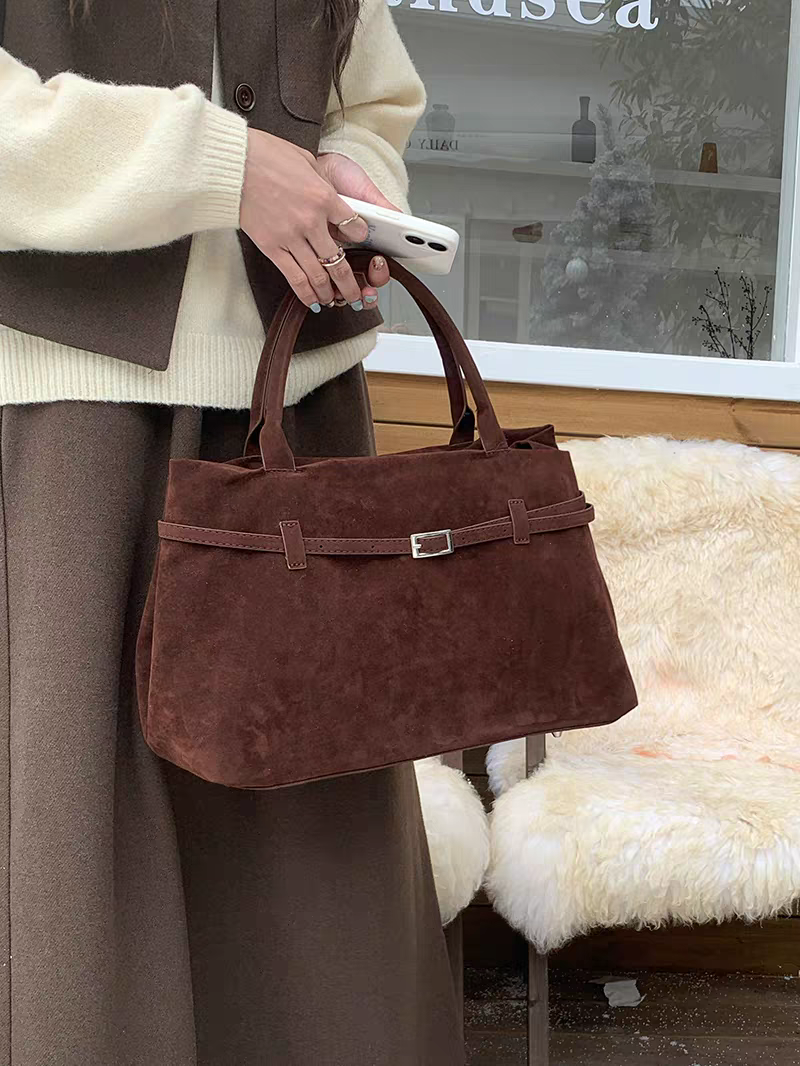 秋冬新款柔霧磨砂手提包 法式絨感復古大包