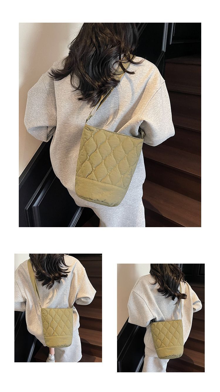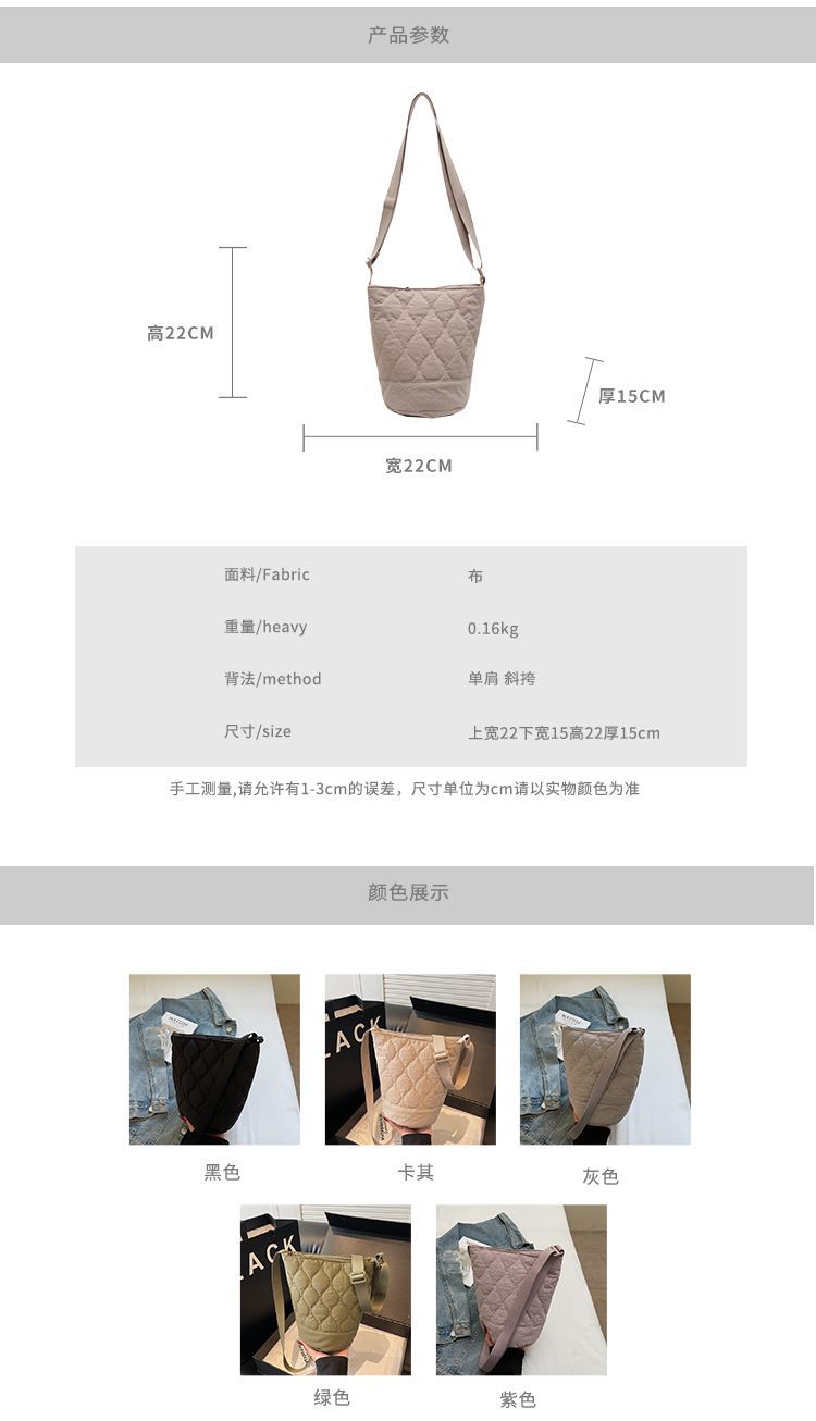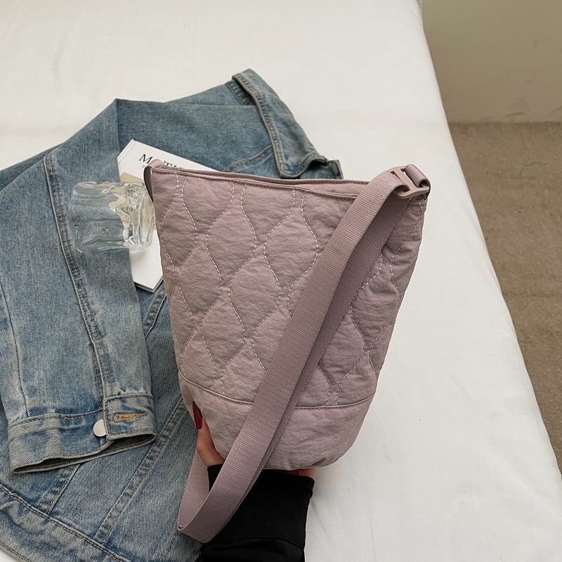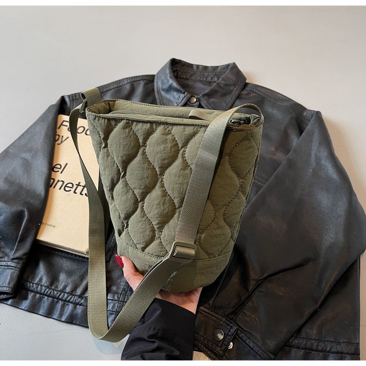 秋冬新款菱格棉感水桶包 小眾溫柔斜背單肩包