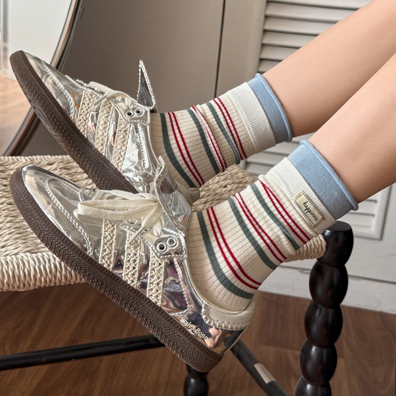 字母布標條紋襪,讓每一步都輕盈又有氛圍感