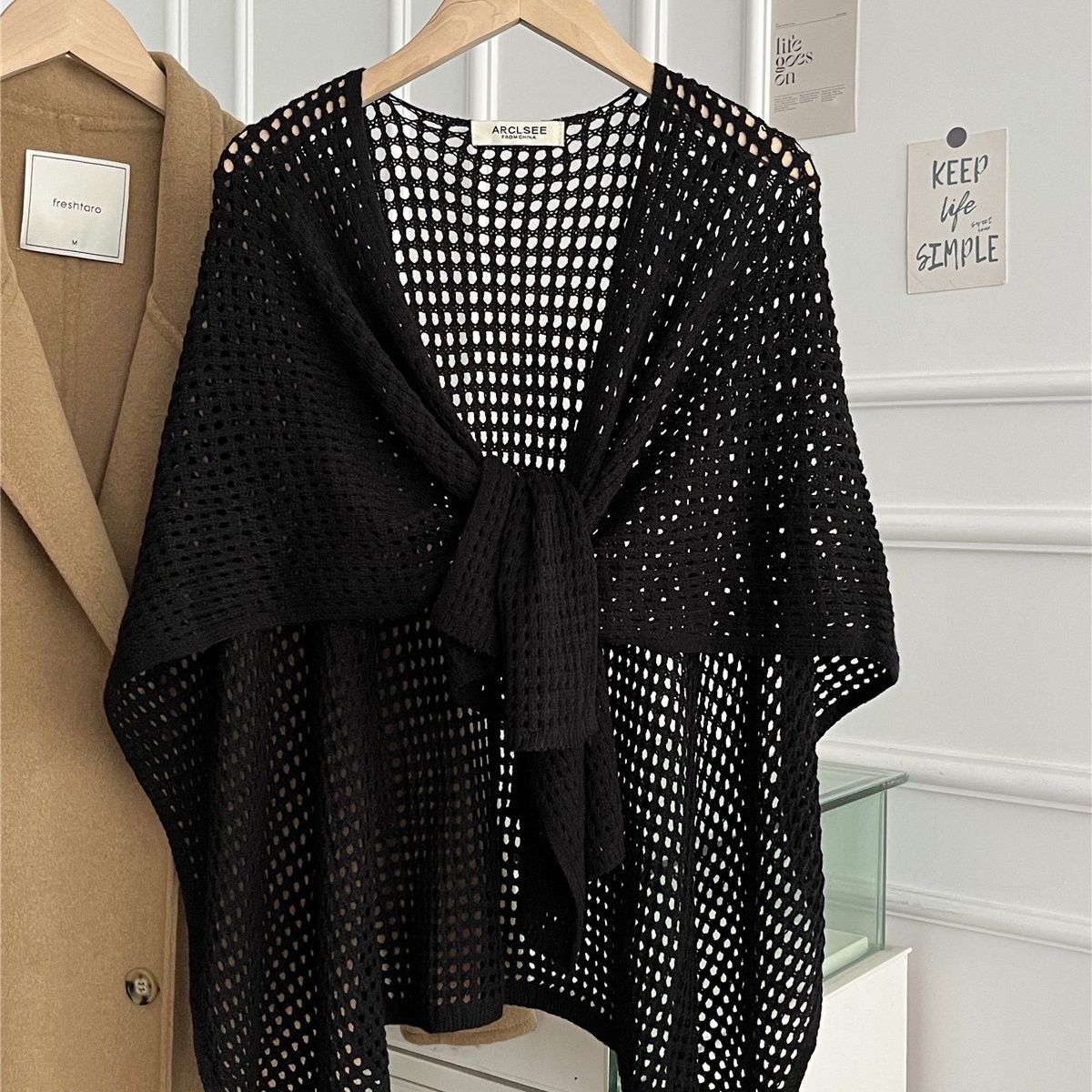 這款鏤空針織披肩,選用舒適柔軟面料,透氣不悶熱,簡單一披就能展現慵懶自在的氛圍