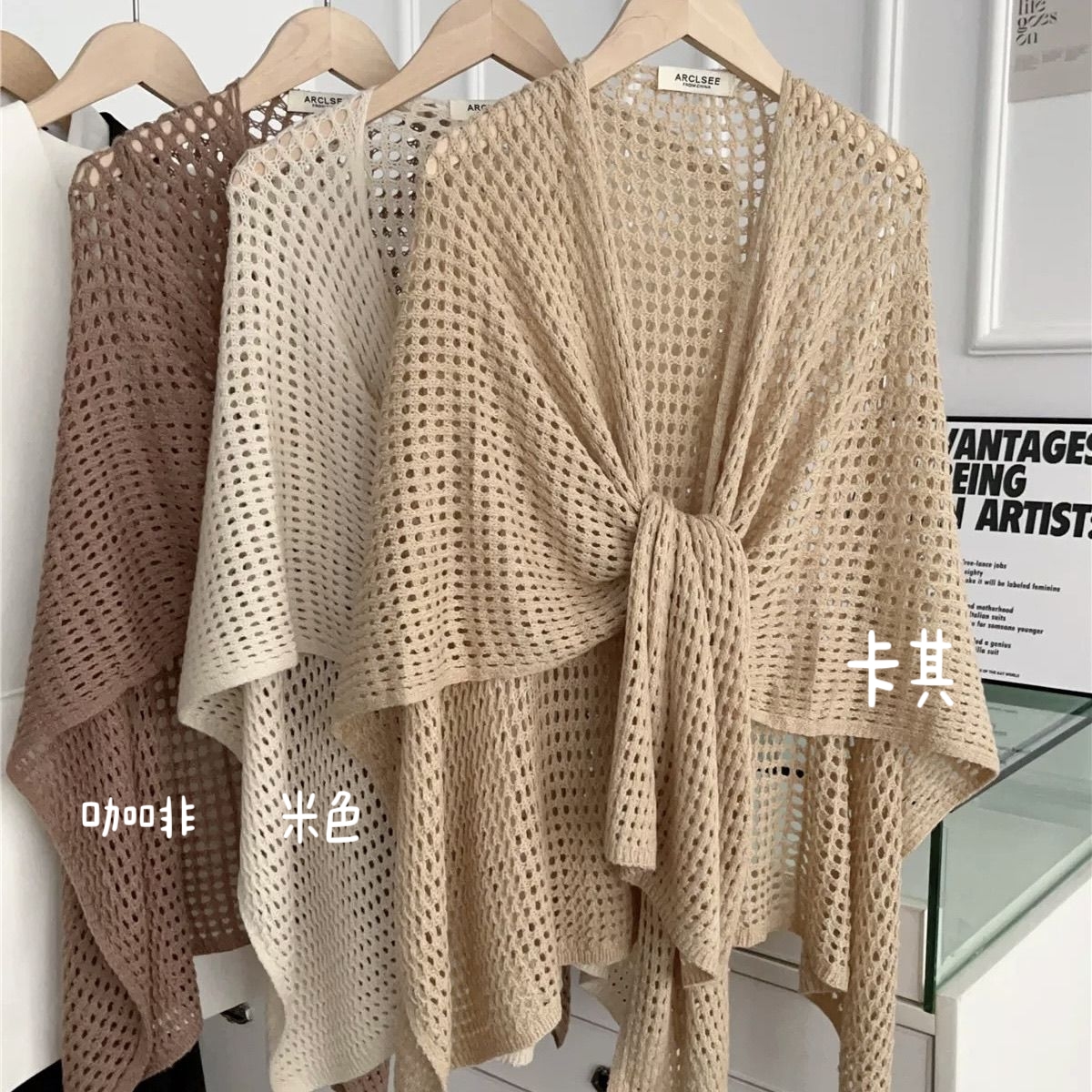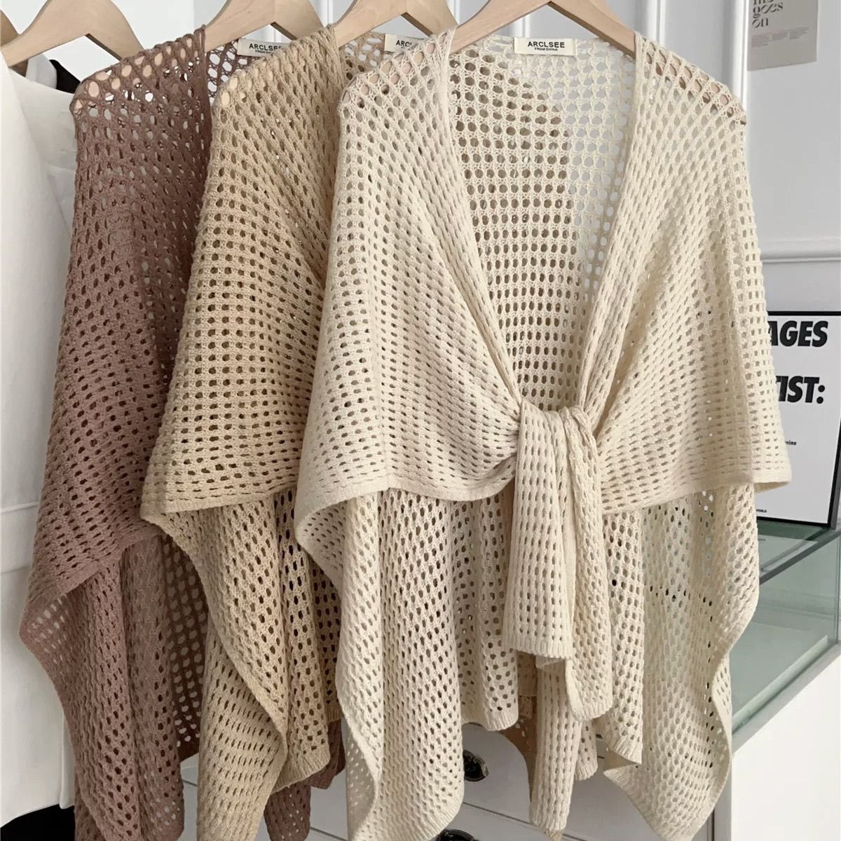 秋季慵懶風純色鏤空針織披肩 外搭百搭開衫斗篷