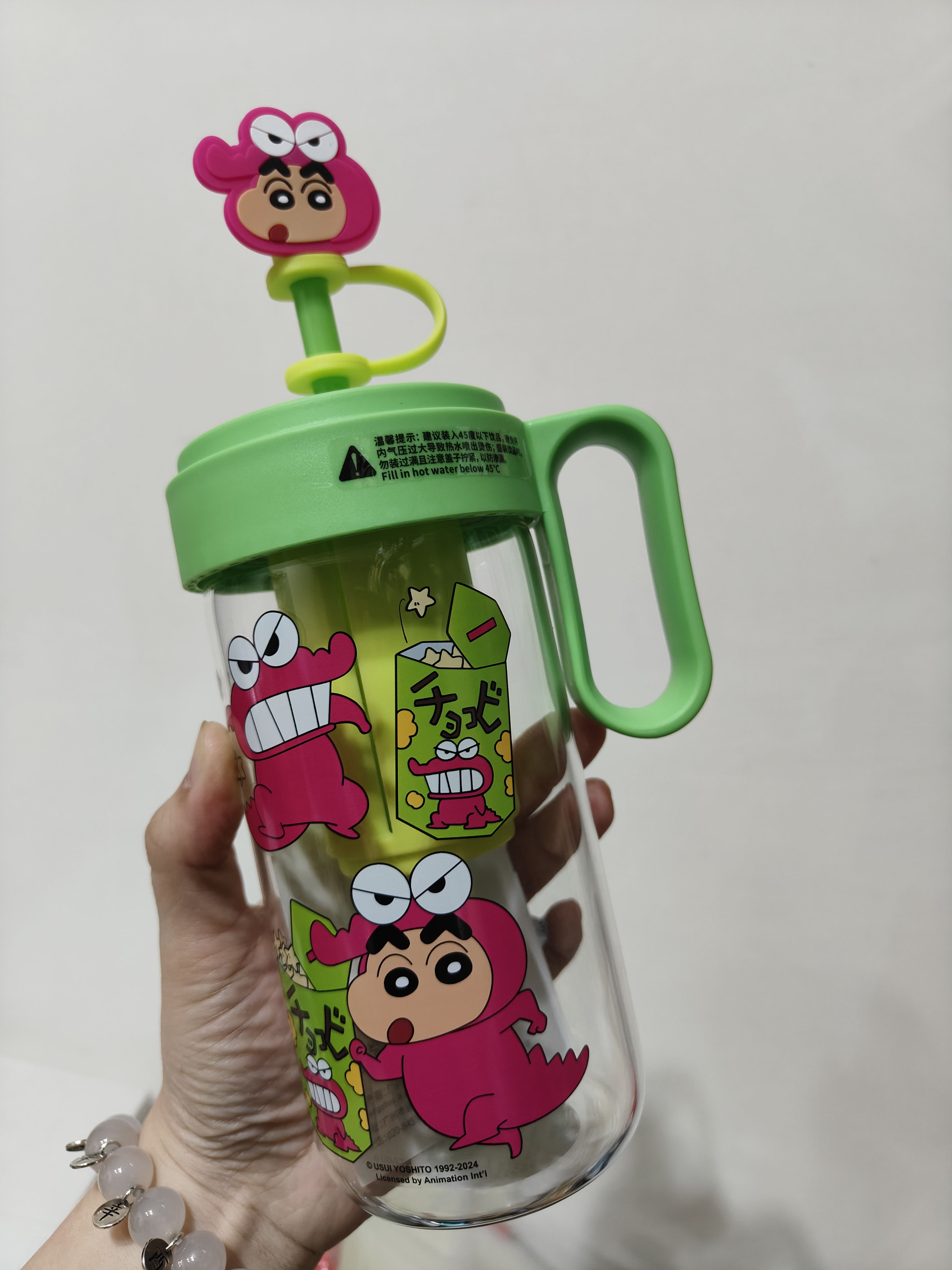 蠟筆小新新款帶吸管可泡茶玻璃水杯 現貨免運