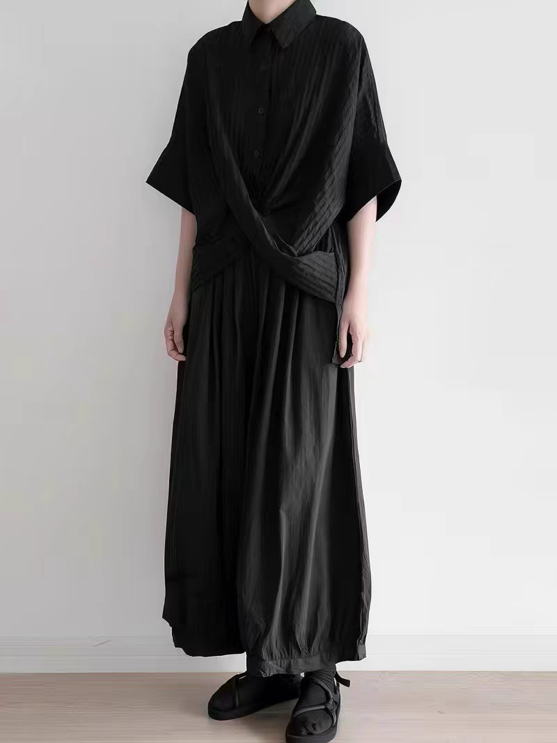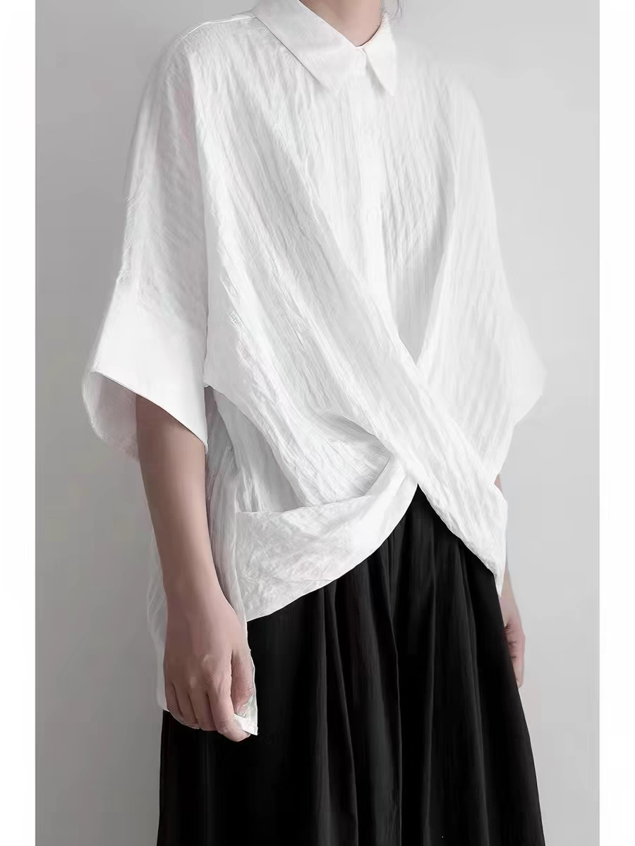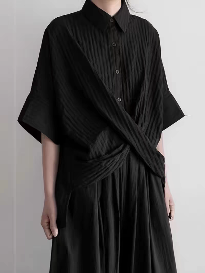 設計交叉感顯氣質條紋肌理上衣