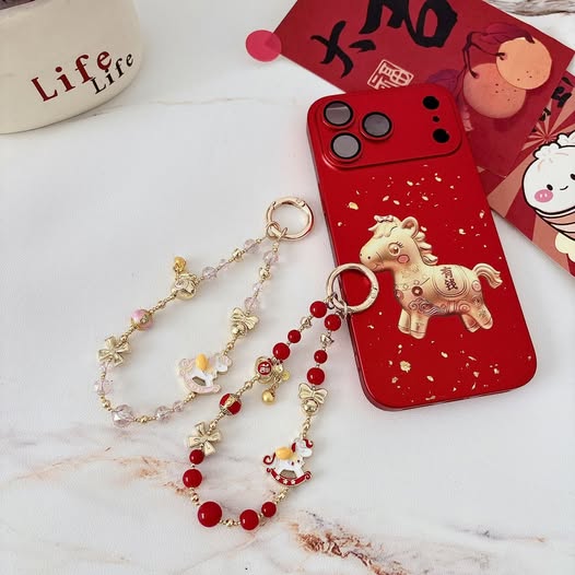 喜氣紅色搭配立體小馬與金色元寶細節,