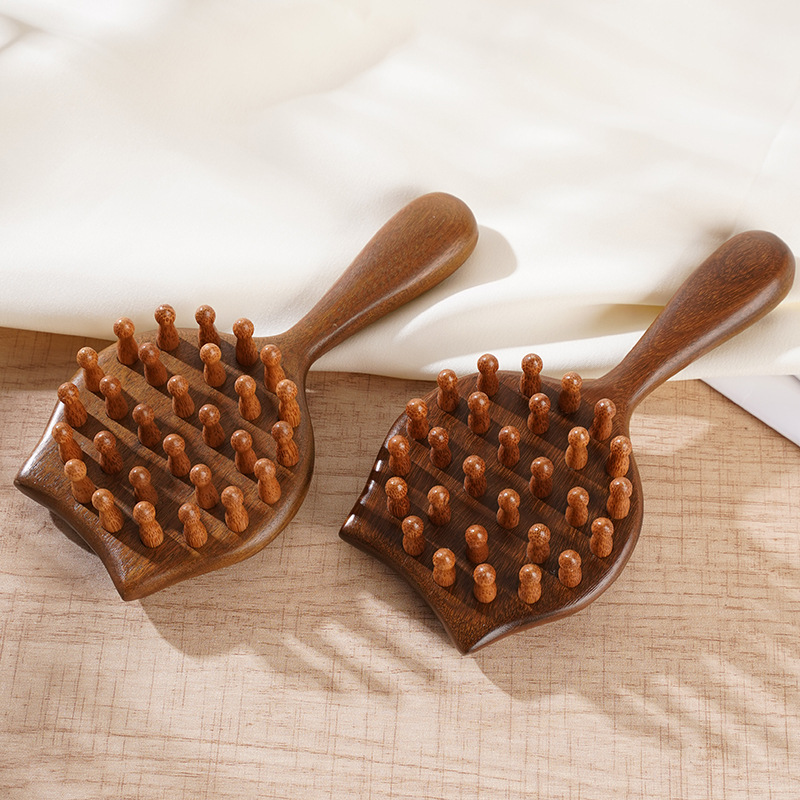 天然金絲檀木製成的小貓按摩梳,