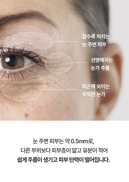 眼周肌膚僅約 0.5mm,較薄、油脂少、最容易老化: