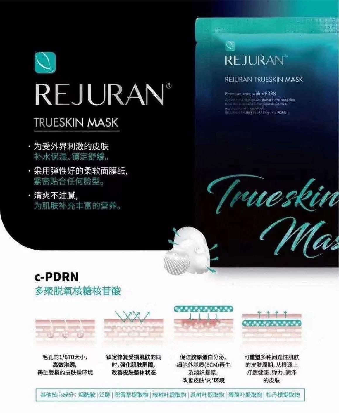 這款Rejuran 黑盒面膜是所有麗珠蘭面膜裡面c-PDRN@含量最最高的一款(3,000ppm)