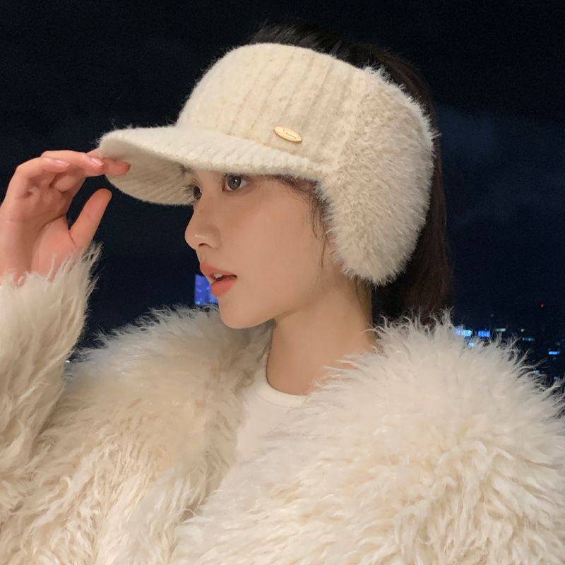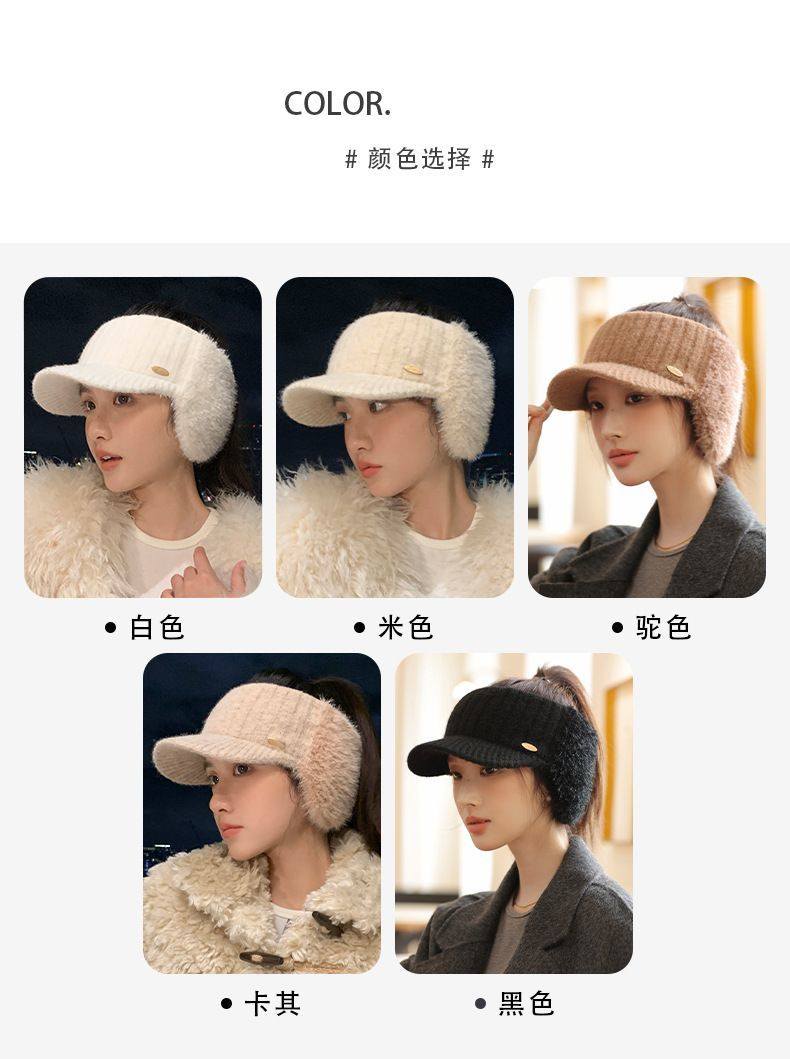 韓版保暖毛絨護耳冬季百搭空頂帽