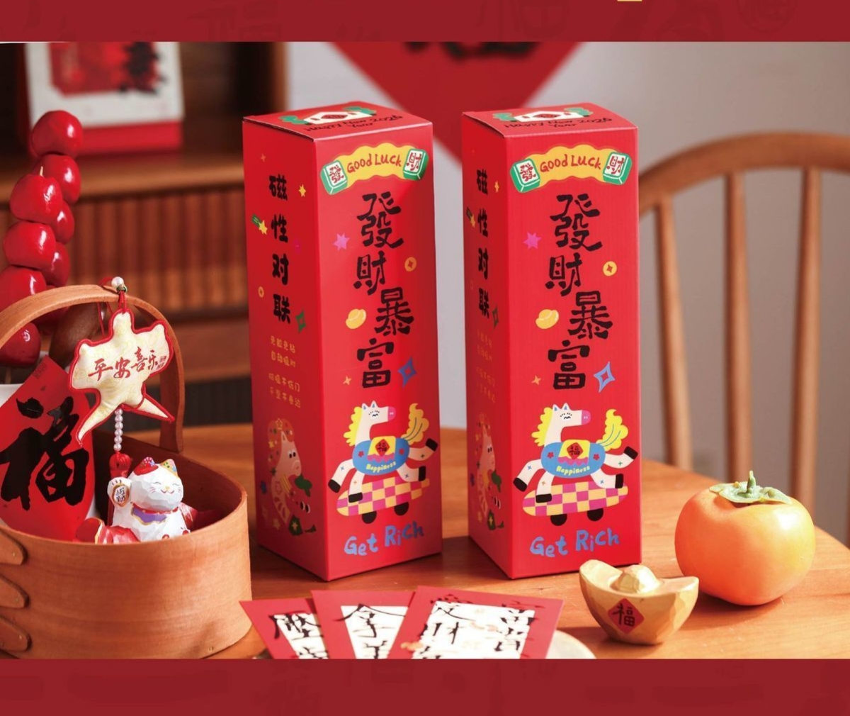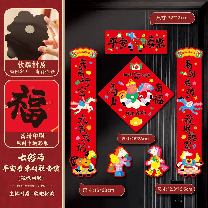 這組 2026 五彩馬新年磁吸對聯套裝,