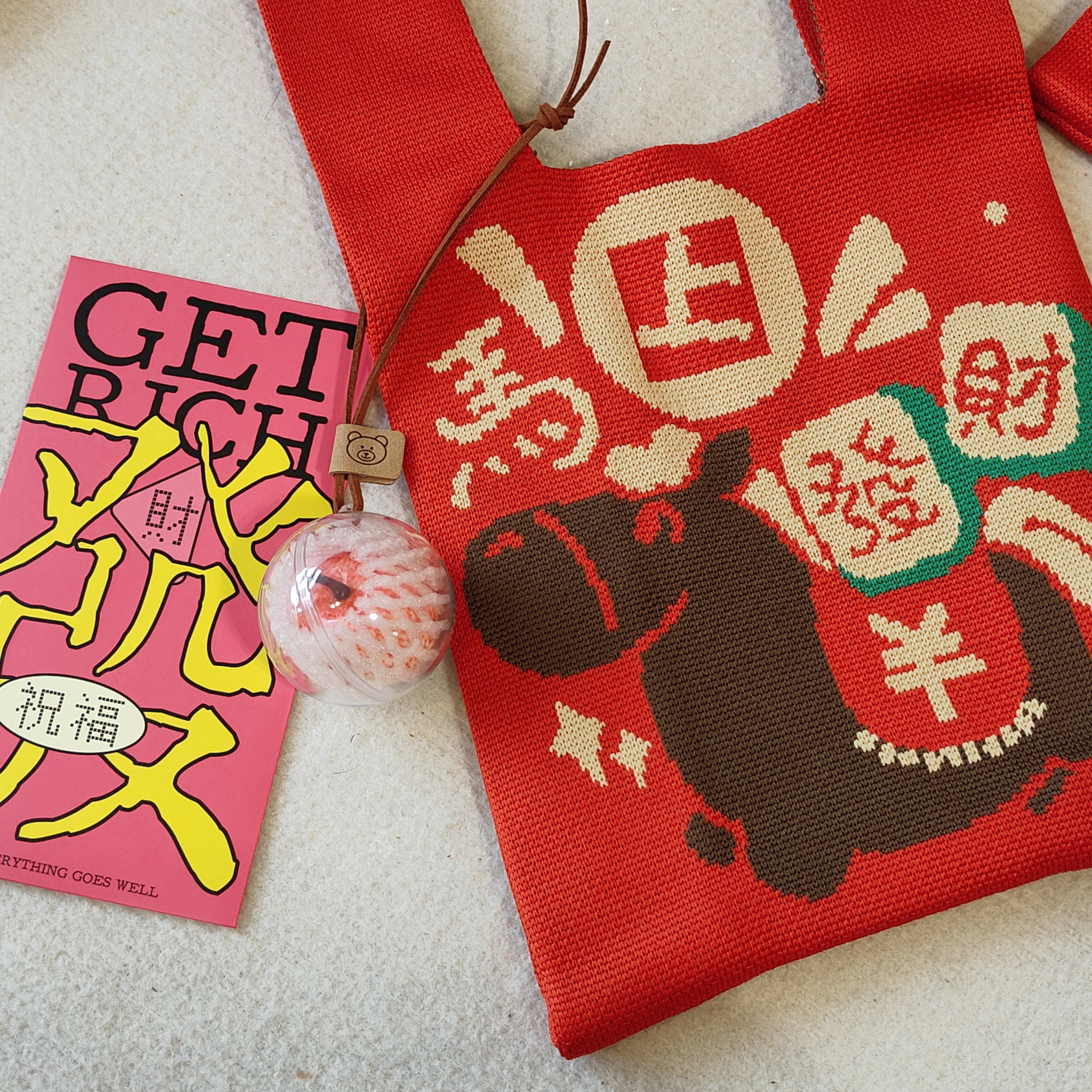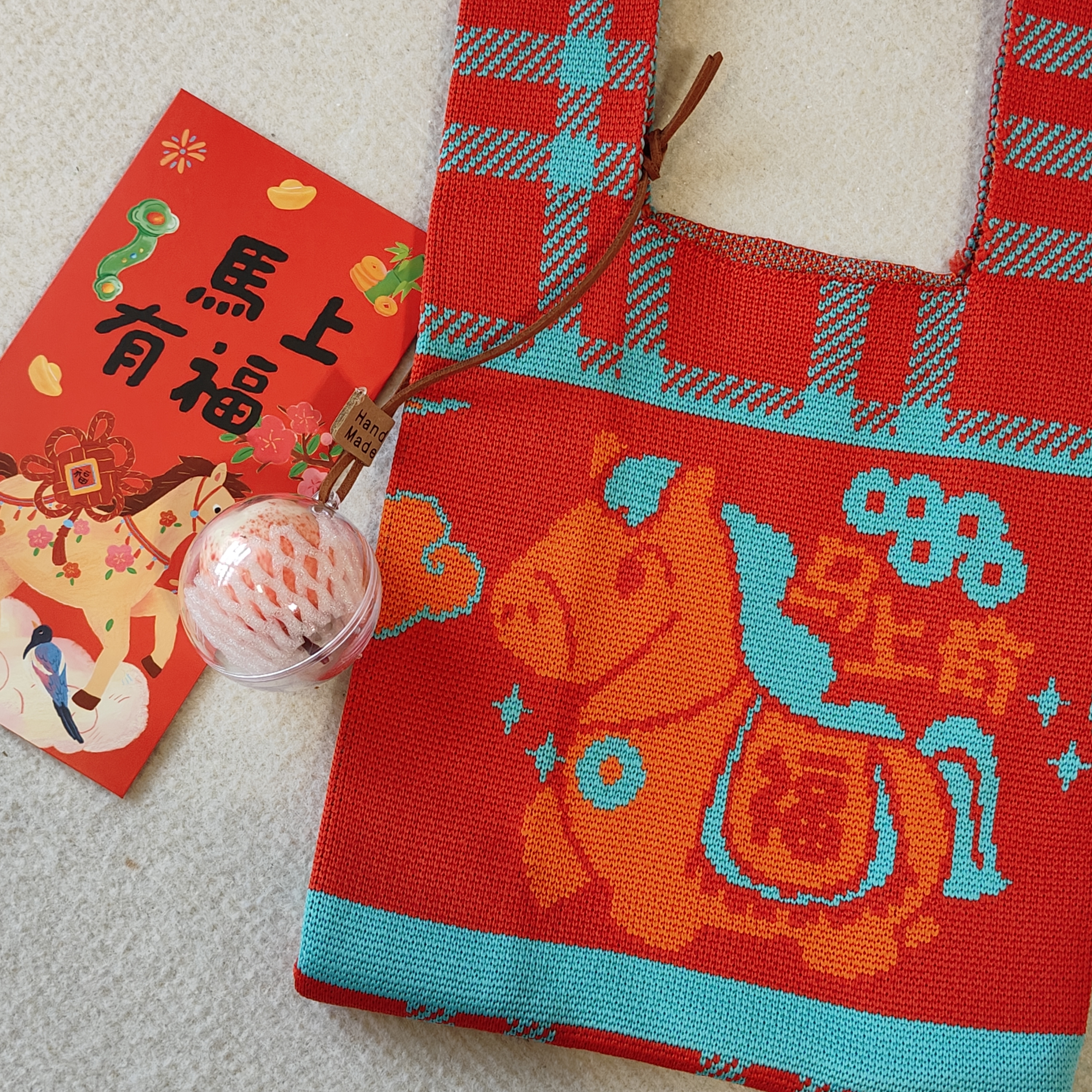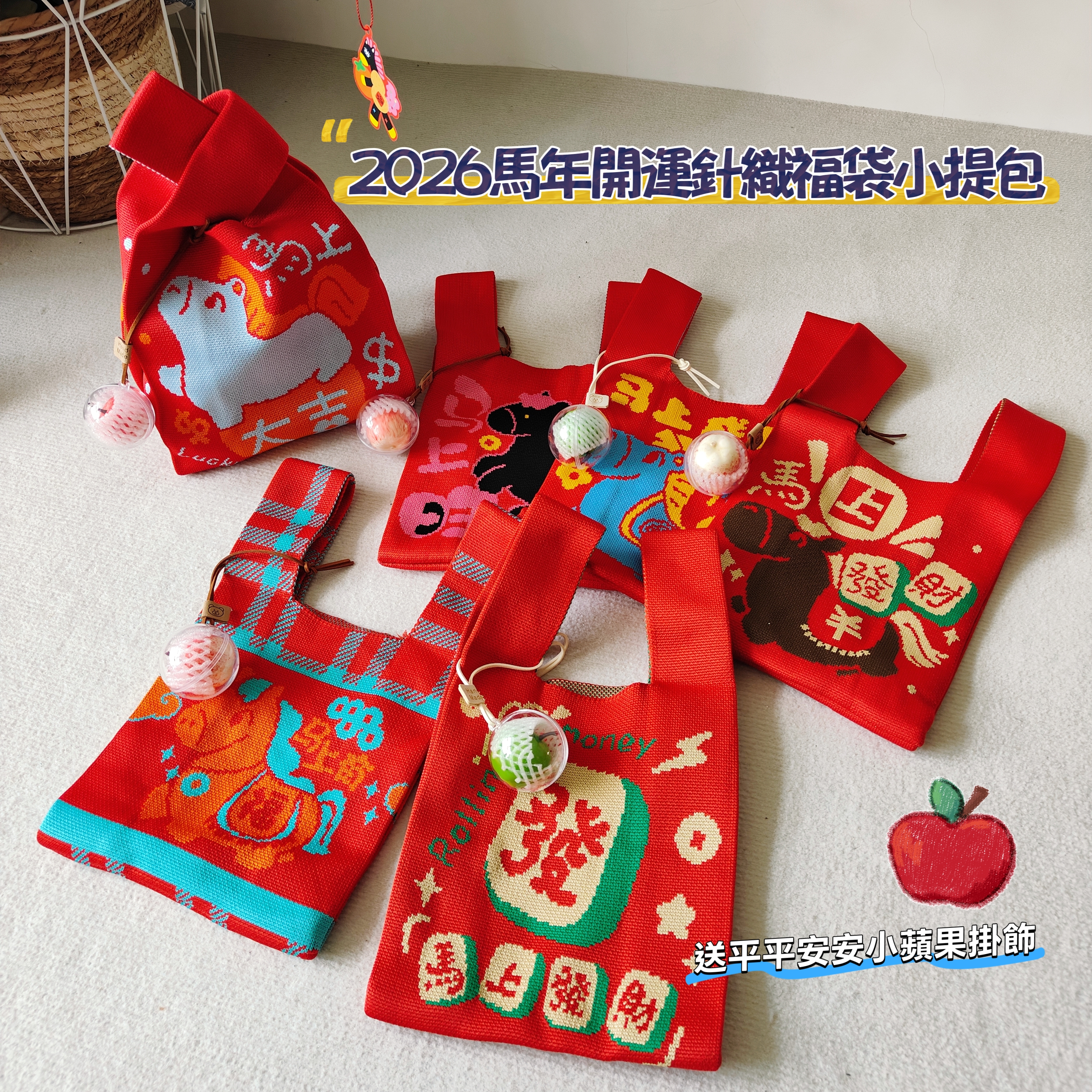 馬年開運針織福袋小提包 附平安蘋果掛飾|新年送禮必備