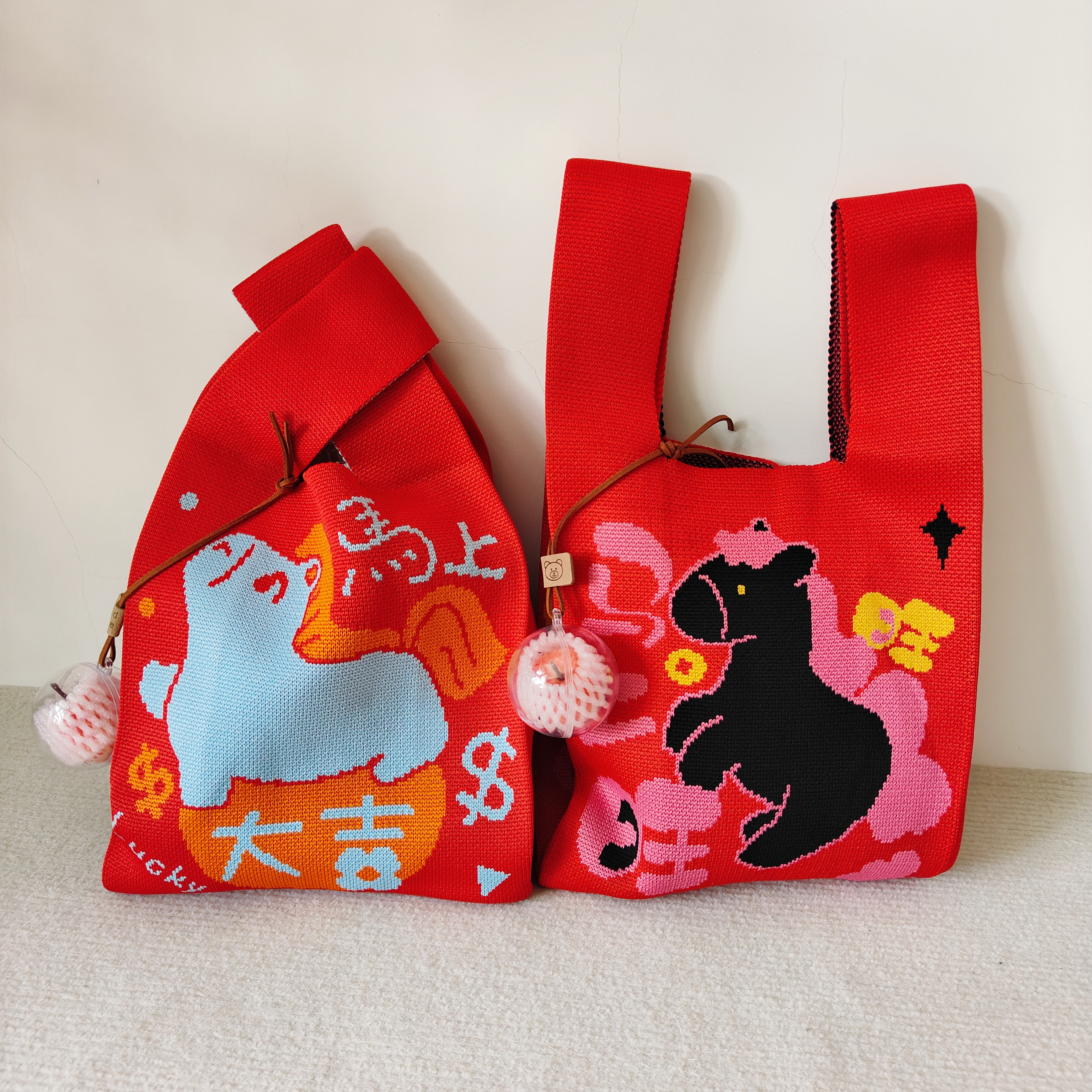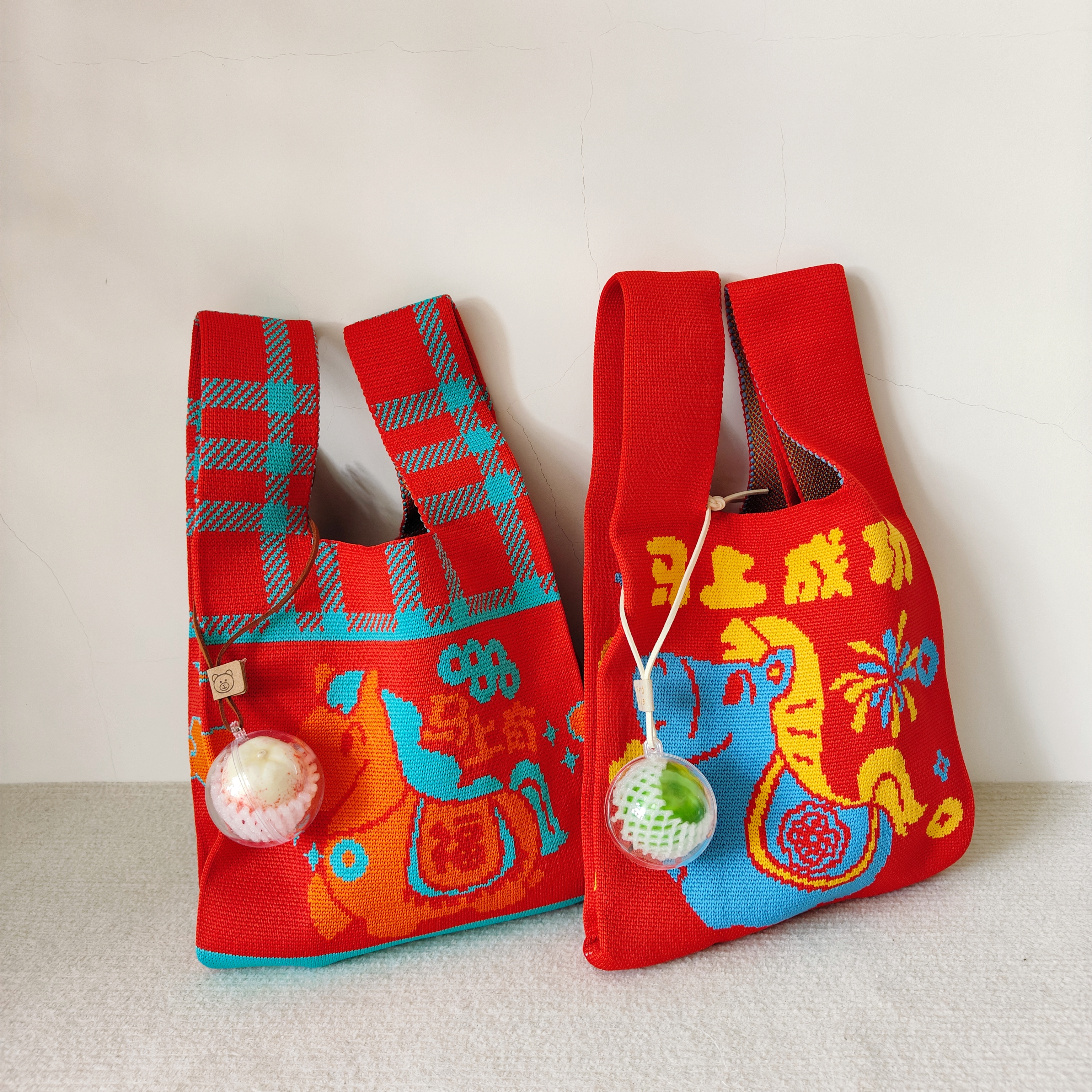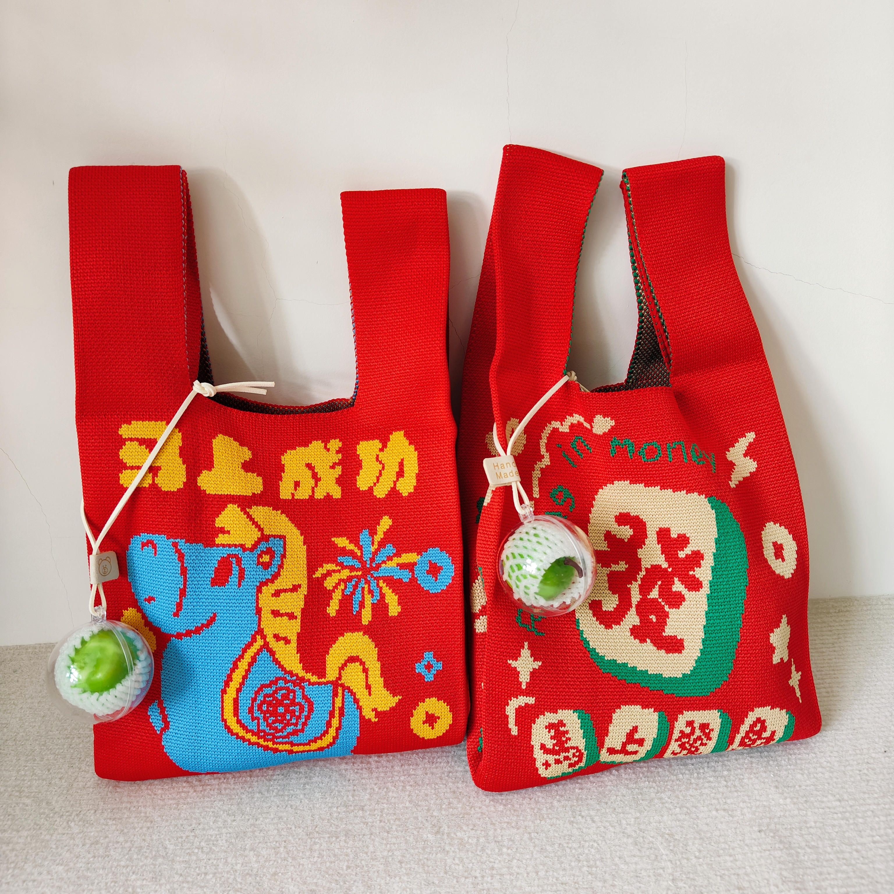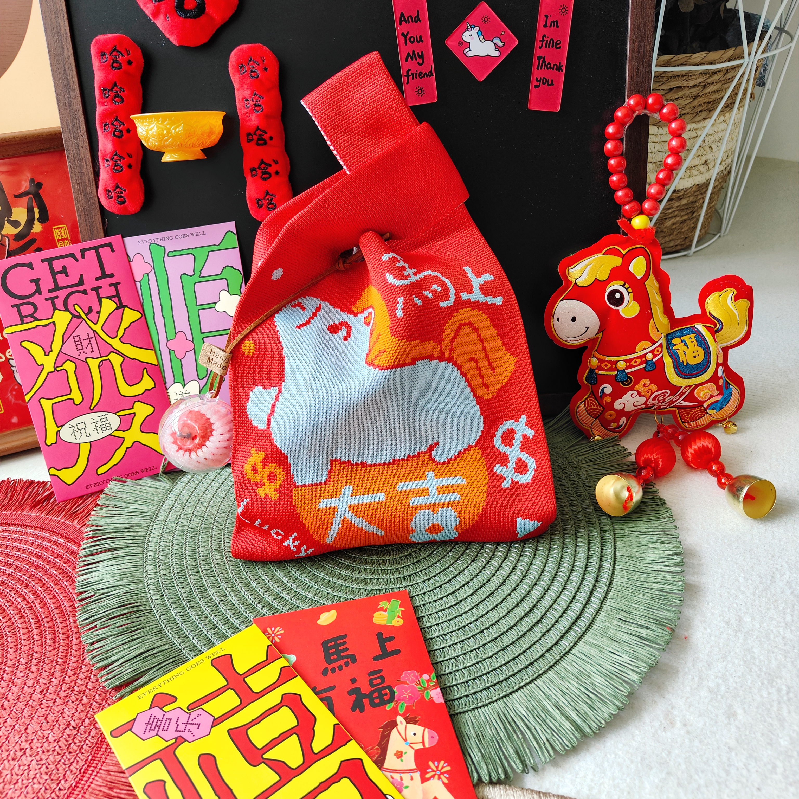 馬年開運針織福袋小提包 附平安蘋果掛飾|新年送禮必備