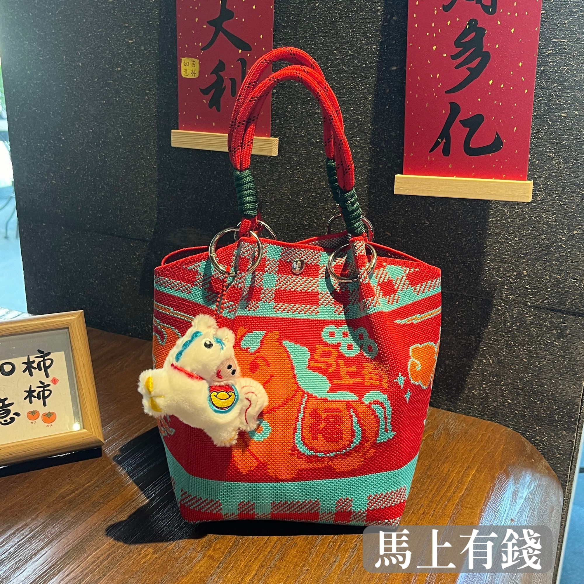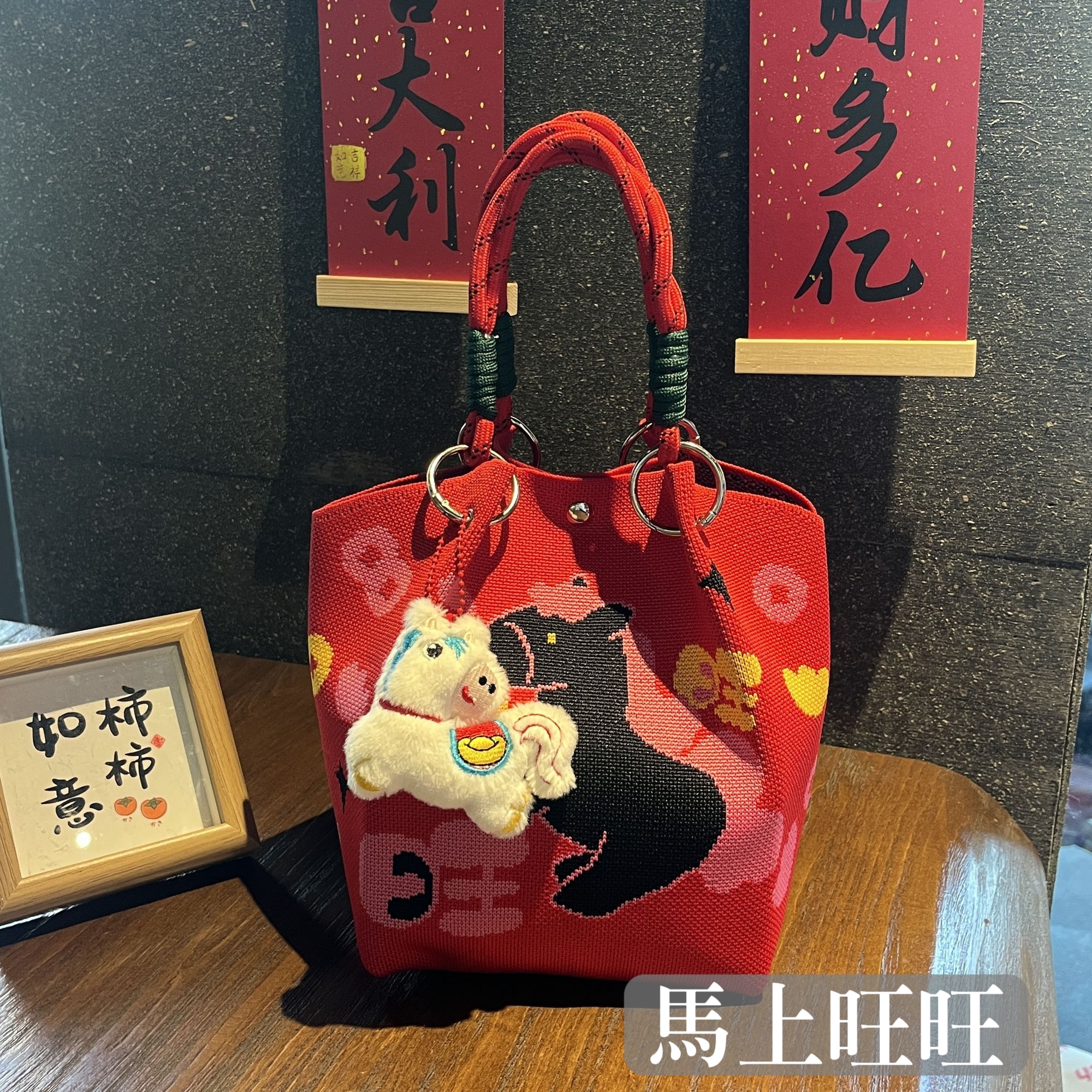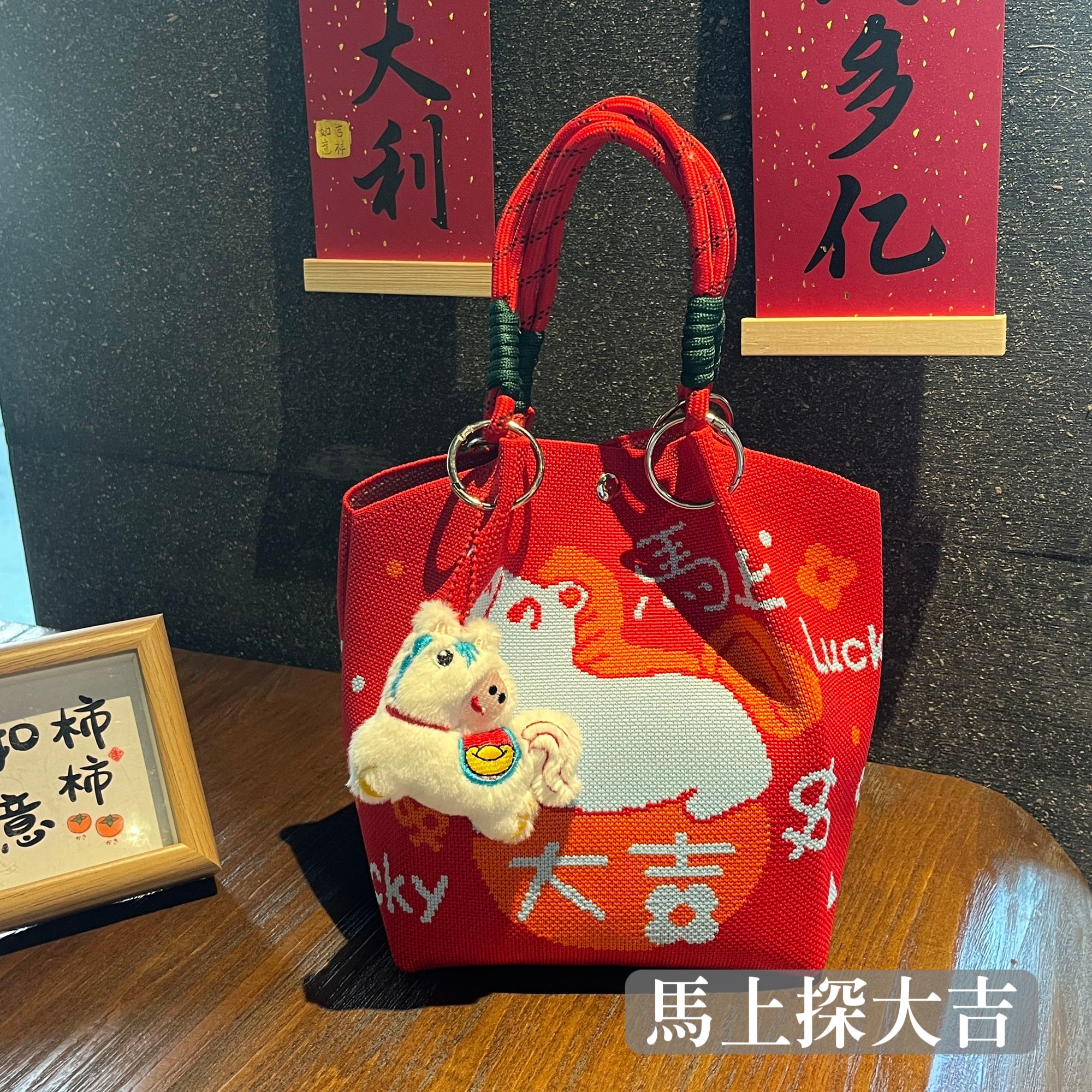 2026 馬年招財小馬針織手提包 大容量喜氣紅新年伴手禮首選手拎包