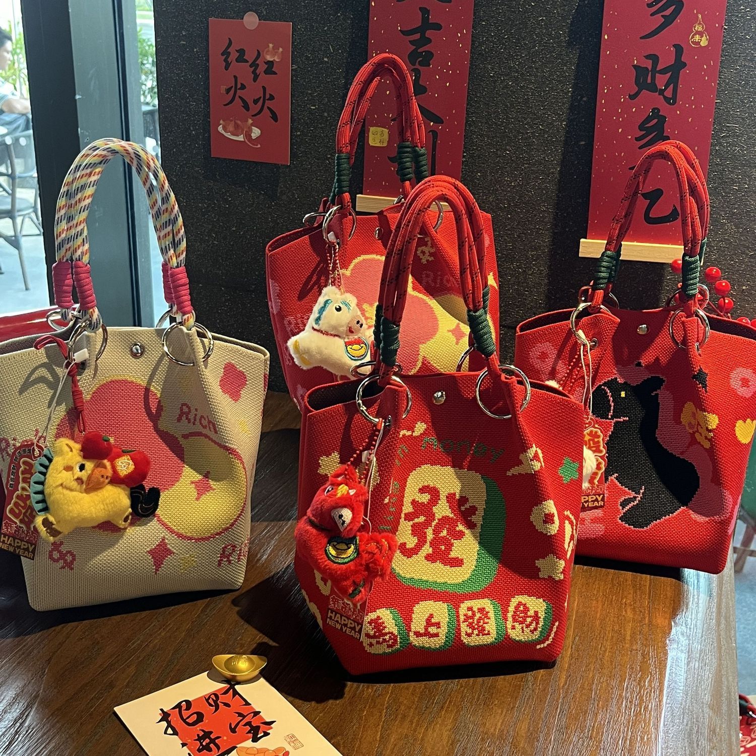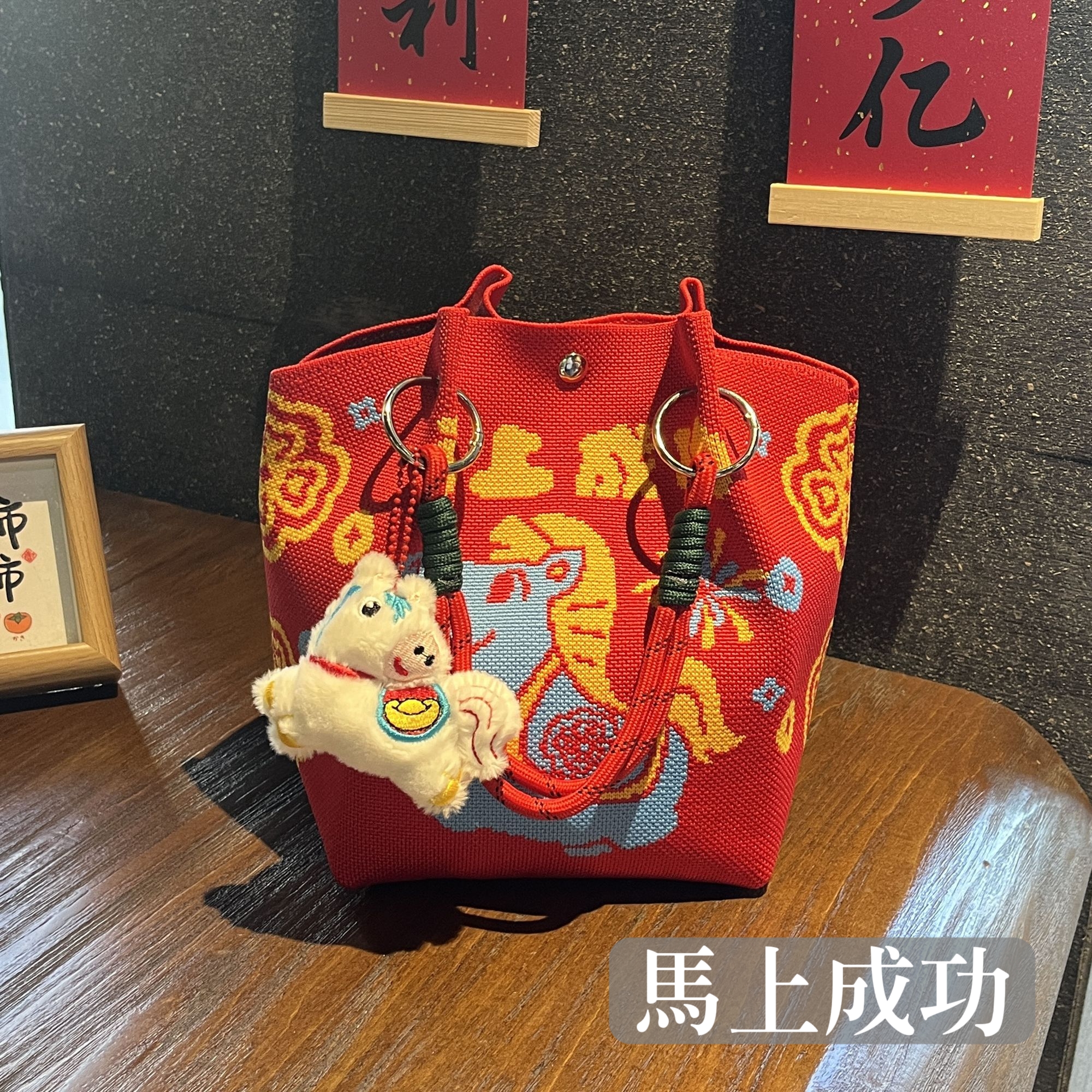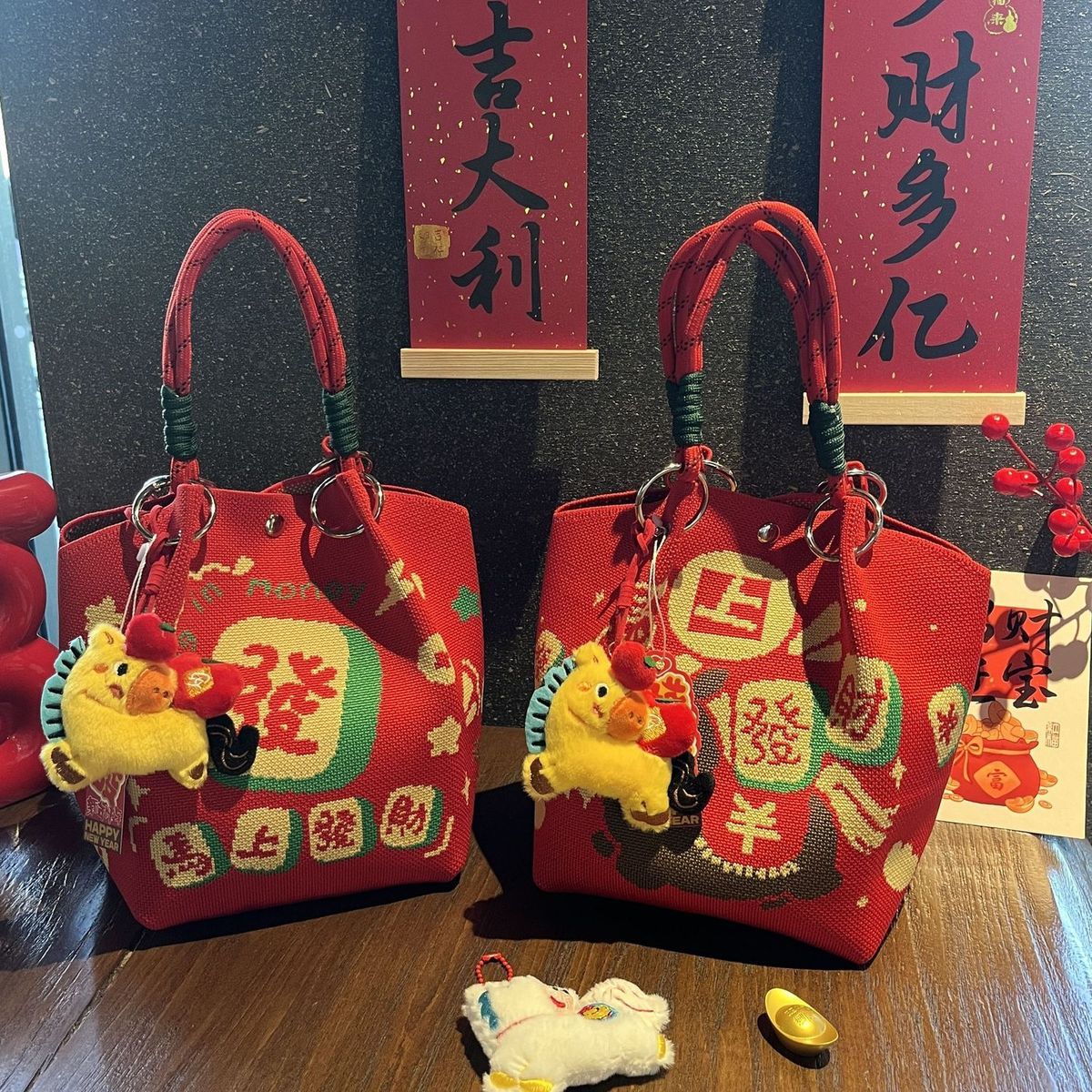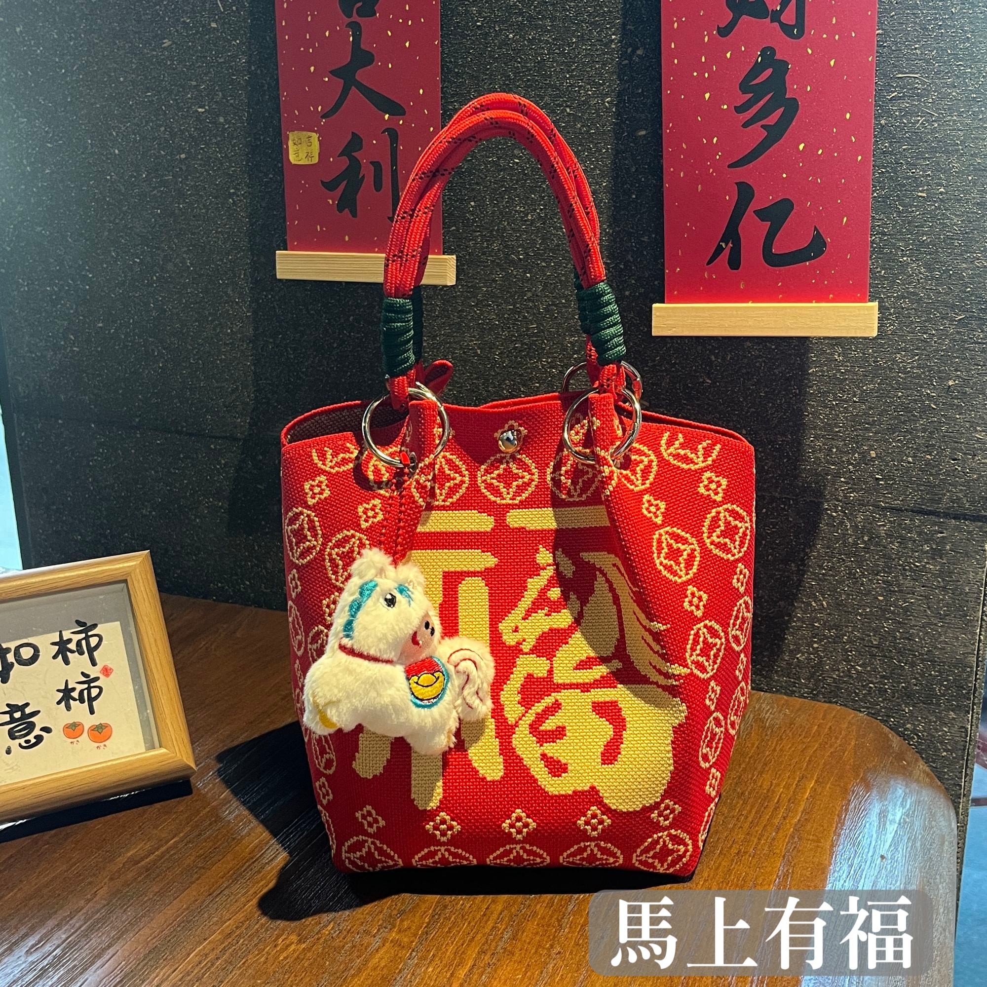 2026 馬年招財小馬針織手提包 大容量喜氣紅新年伴手禮首選手拎包