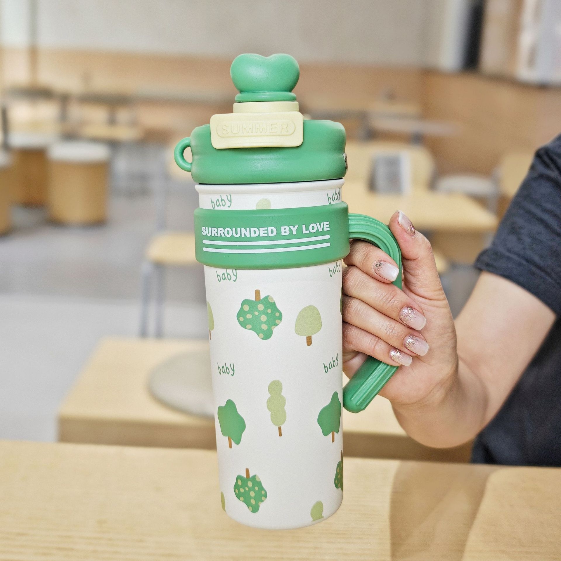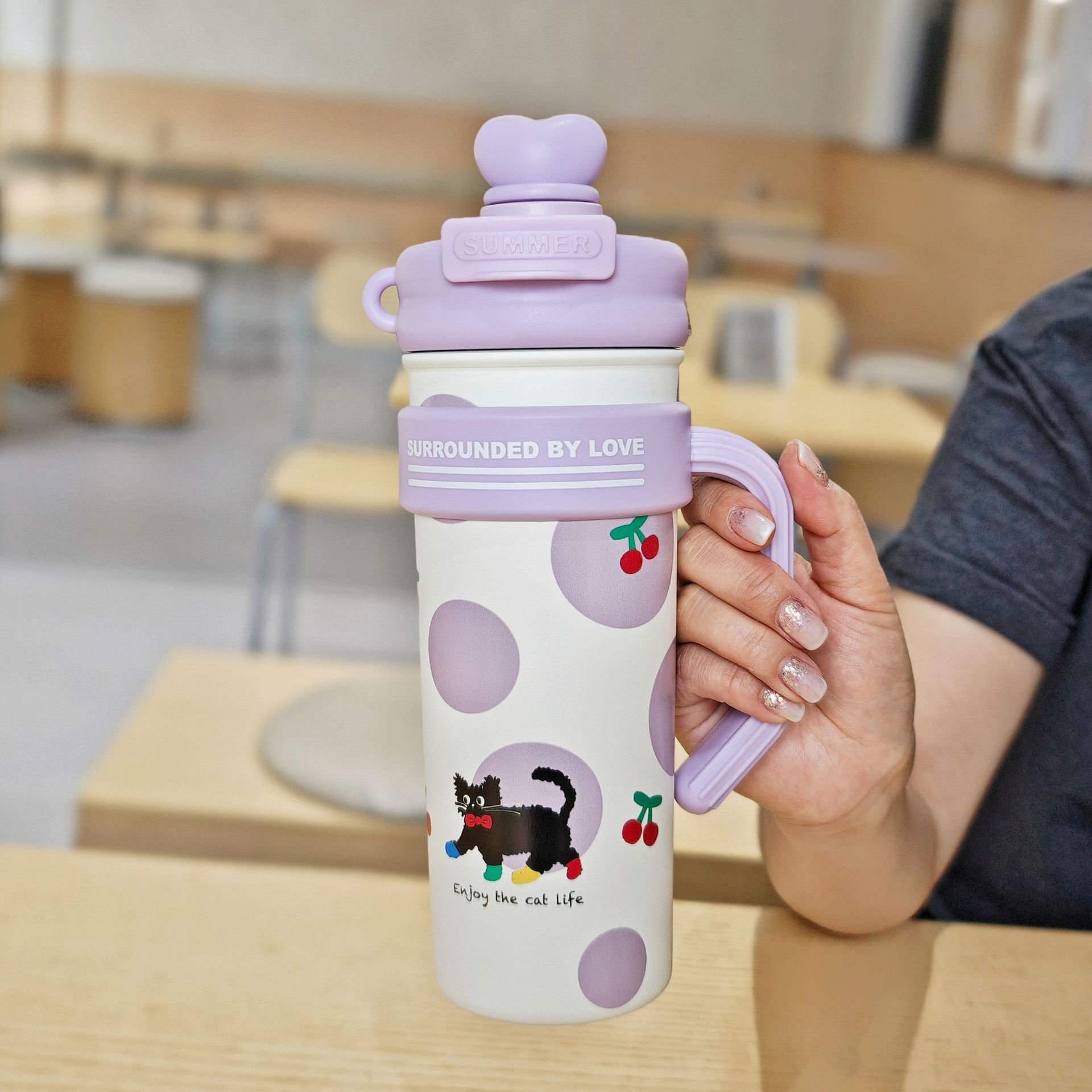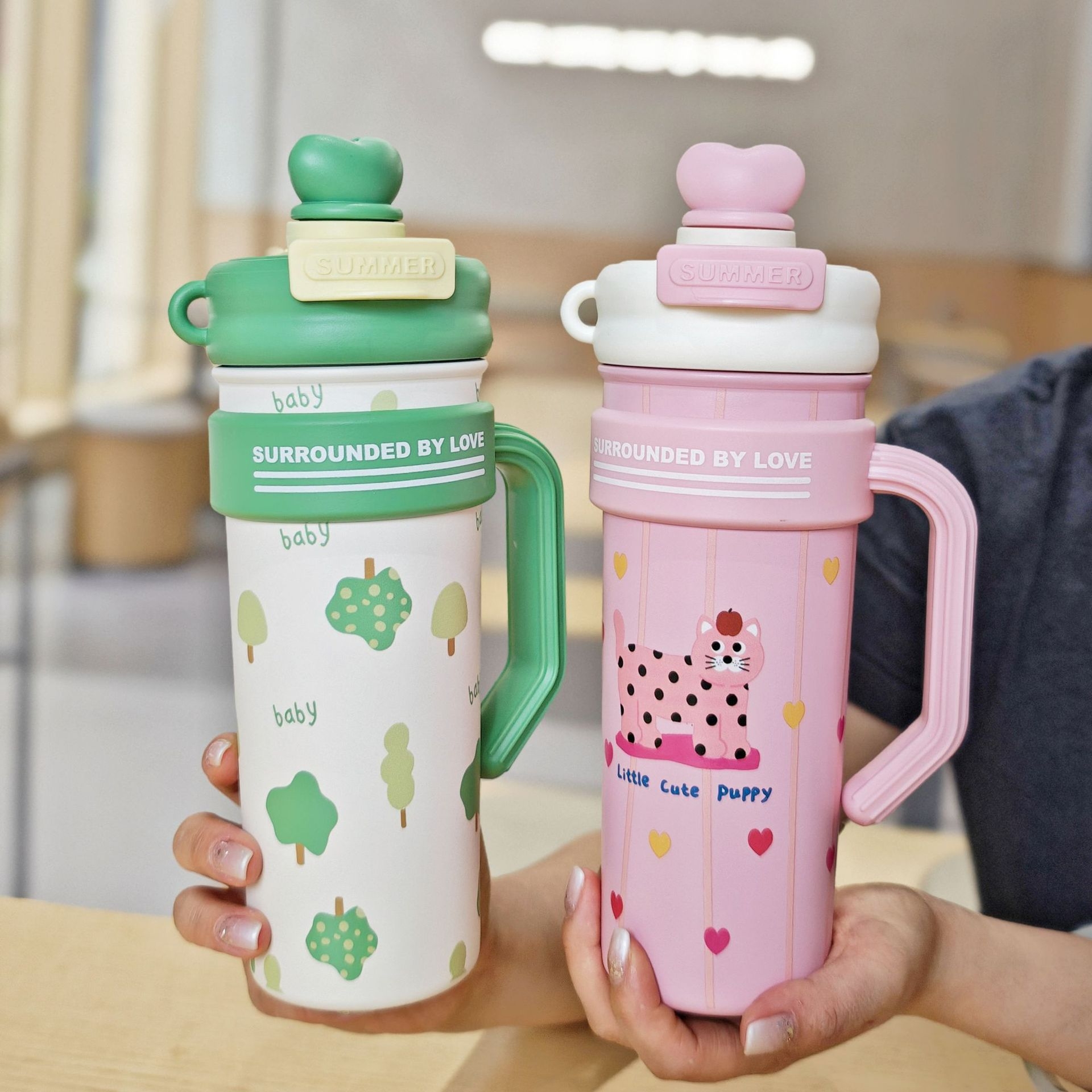 這款 新款大容量卡通手把保溫杯,不僅外型超可愛,功能更是貼心滿滿!容量高達 700ml,隨時補水不怕不夠喝~