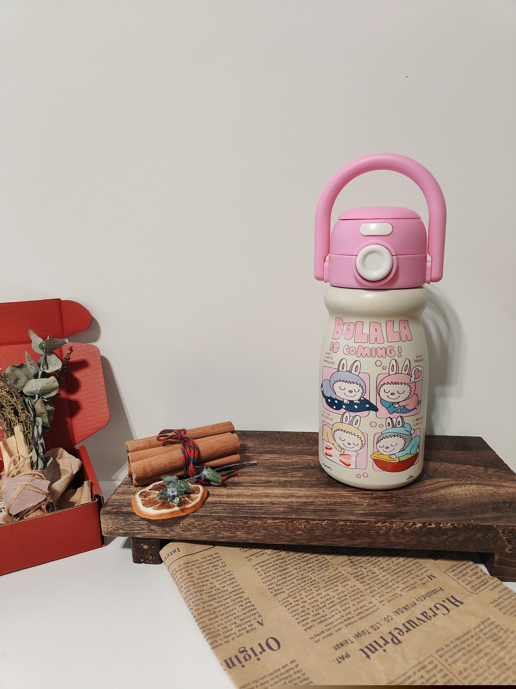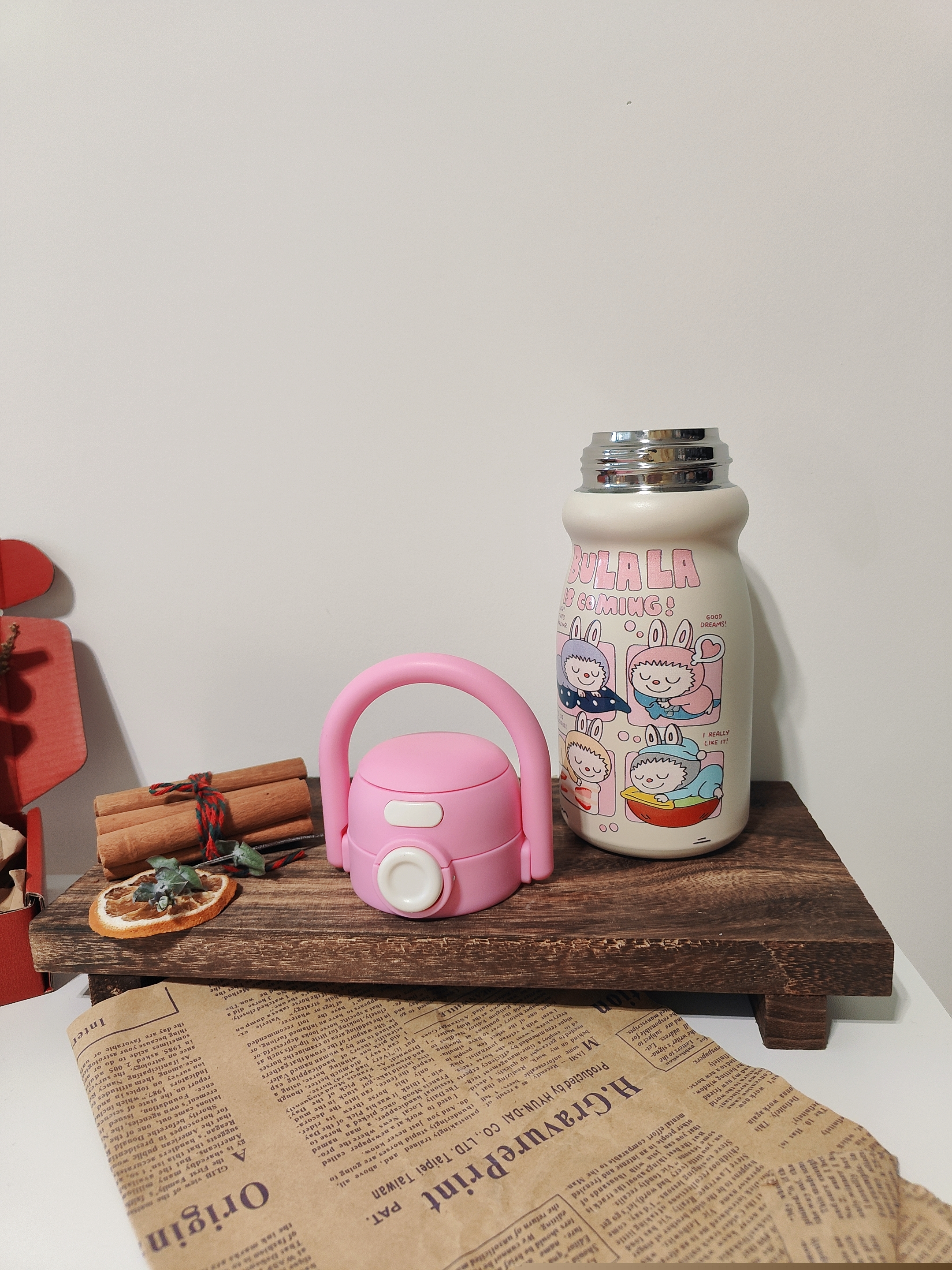 柔霧奶油杯身 × 粉嫩手提杯蓋,